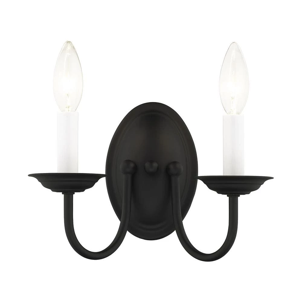 Livex Lighting is well known for quality, style and value. This 2 light wall sconce from the Home Basics collection is an alluring reflection of traditional style. The elegant sweeping arms and black finish are beautiful details that unite for a breathtaking piece. This well-rounded fixture is sure to satisfy your lighting needs.