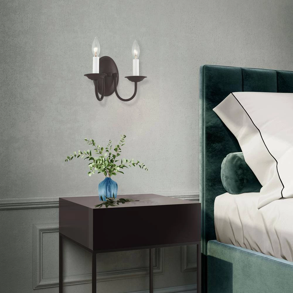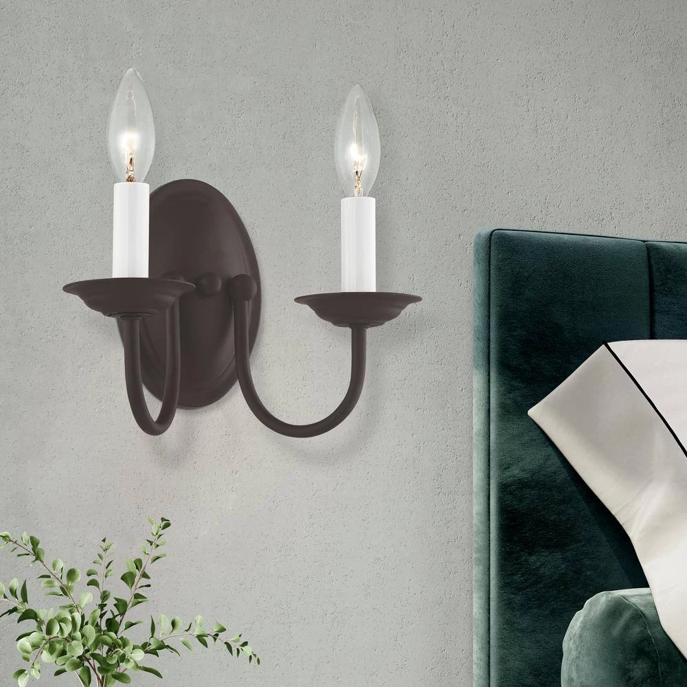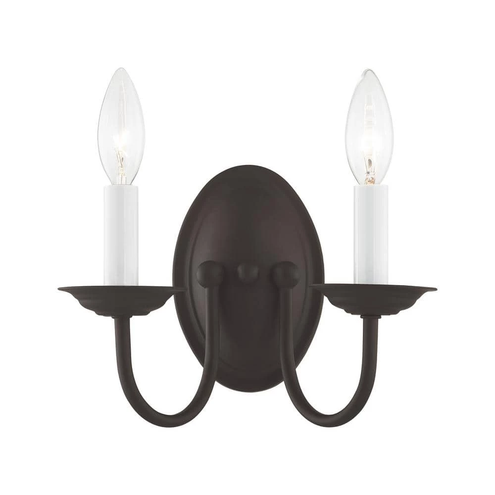 Enhance the lighting in your home with this Home Basics 2 Light Wall Sconce. A perfect choice for a foyer, hallway or kitchen, it features a candelabra base and a bronze finish, creating a classic look. Included hardware allows a convenient installation. Steel construction ensures lasting use.