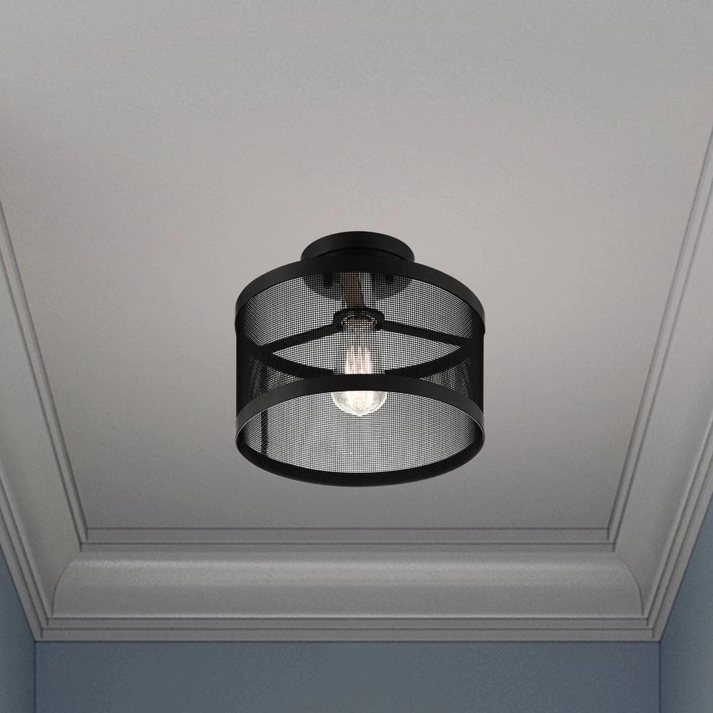 Livex Lighting is well known for quality, style and value. The Industro collection has a clean, crisp look and contemporary appeal. This one-light petite semi-flush has a black finish with brushed nickel finish accents and a sleek stainless steel mesh shade. Will adapt well in the hallway, bathroom, kitchen and a small bedroom tastefully elevating your style. This well-rounded fixture is sure to satisfy your lighting needs.