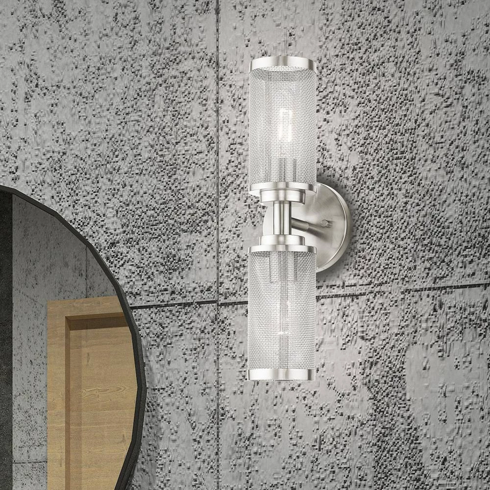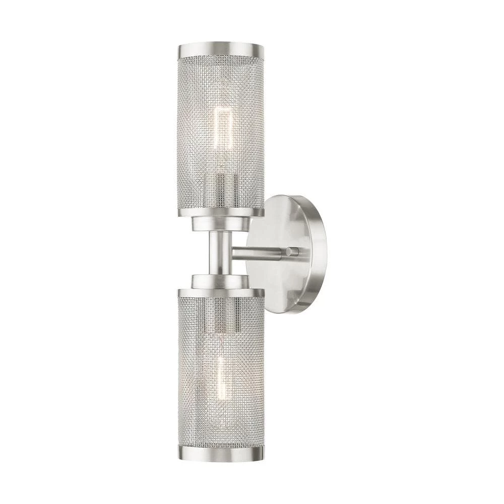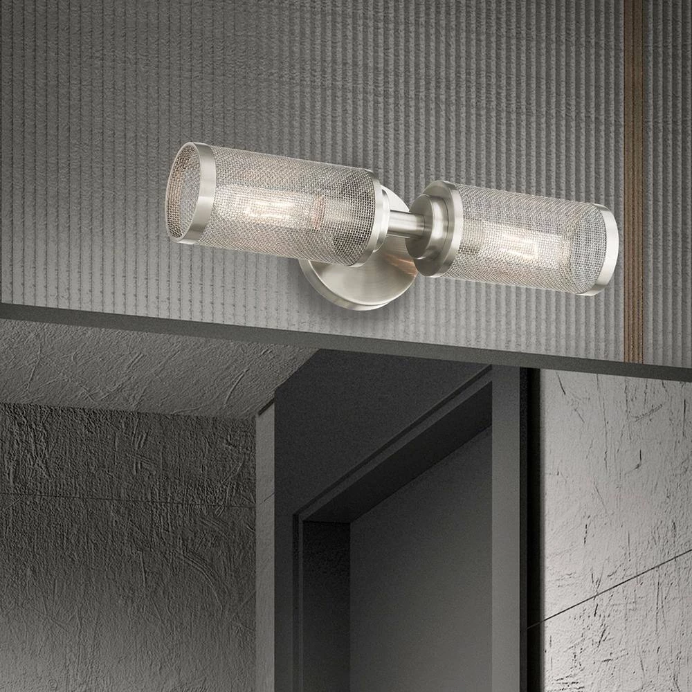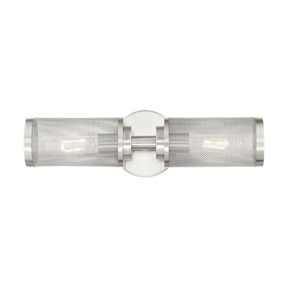 Livex Lighting is well known for quality, style and value. The Industro collection has a clean, crisp look and contemporary appeal. This 2-light sconce has a brushed nickel finish and a sleek stainless steel mesh shade. This double light sconce easily fits into an industrial, transitional and modern classic kitchens or bathrooms. This well-rounded fixture is sure to satisfy your lighting needs.