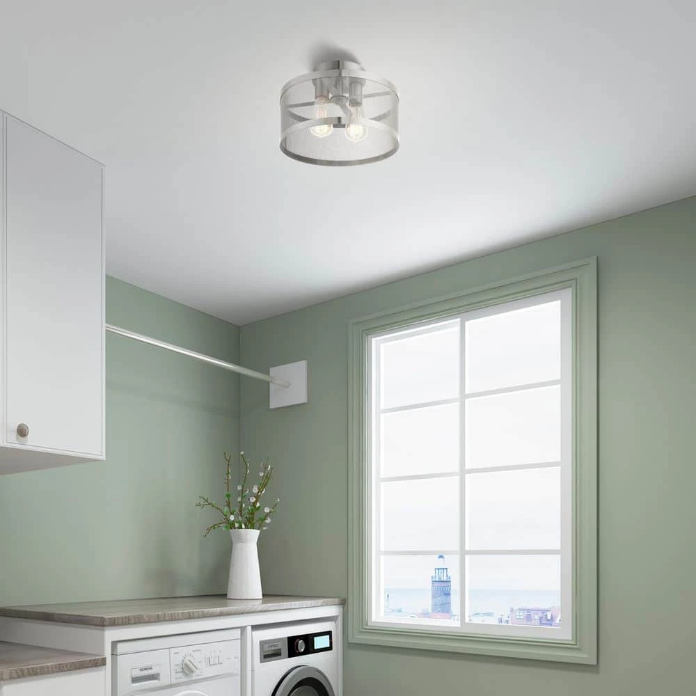 Livex Lighting is well known for quality, style and value. The Industro collection has a clean, crisp look and contemporary appeal. This 2-light small semi-flush has a brushed nickel finish and a sleek stainless steel mesh shade. Will adapt well in the hallway, bathroom, kitchen and bedroom tastefully elevating your style. This well-rounded fixture is sure to satisfy your lighting needs.