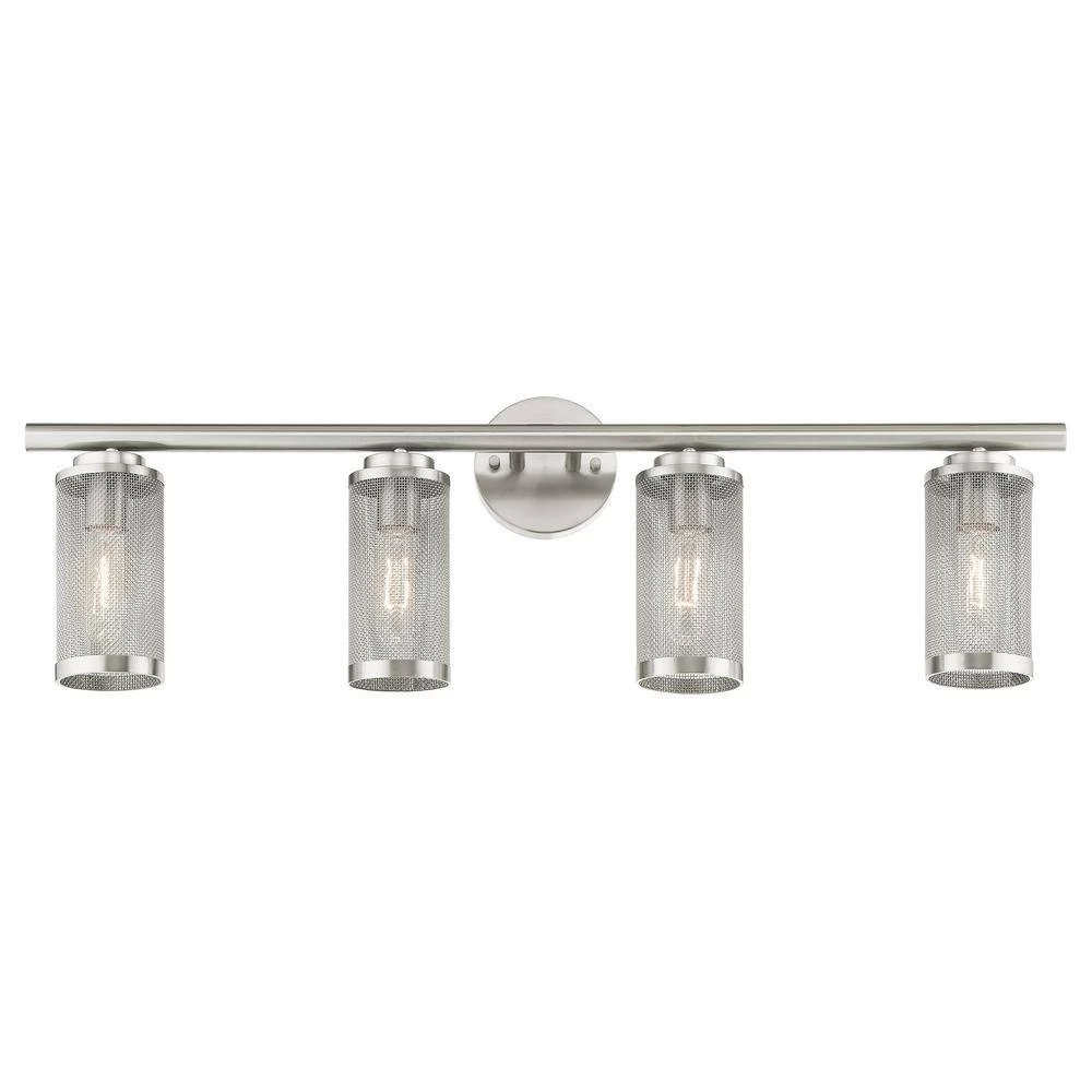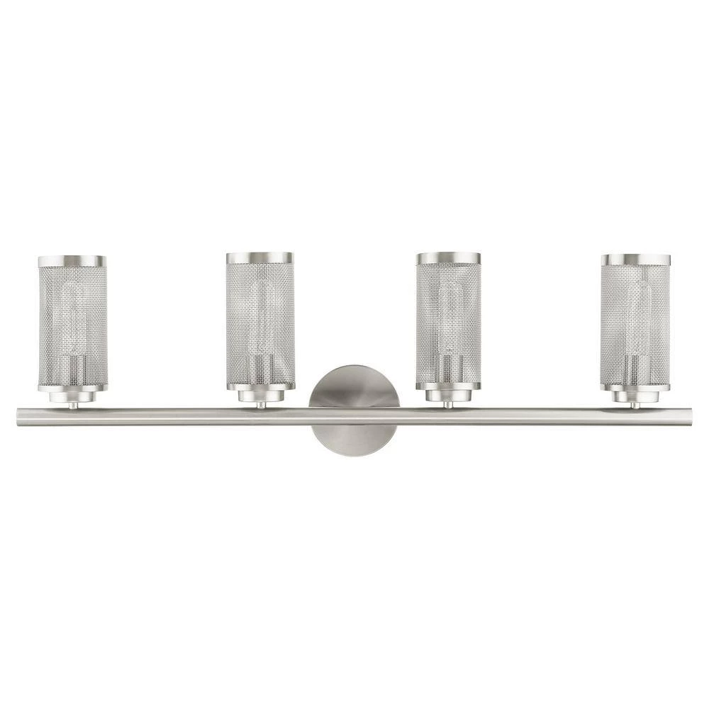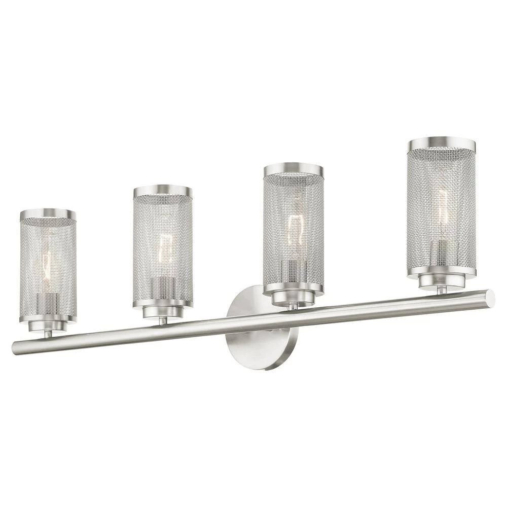Livex Lighting is well known for quality, style and value. The Industro collection has a clean, crisp look and contemporary appeal. This 4-light vanity sconce has a brushed nickel finish and a sleek stainless steel mesh shade. This vanity sconce easily fits into industrial, transitional or modern classic bathrooms. This well-rounded fixture is sure to satisfy your lighting needs.