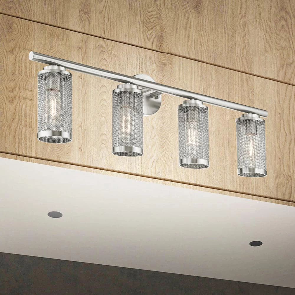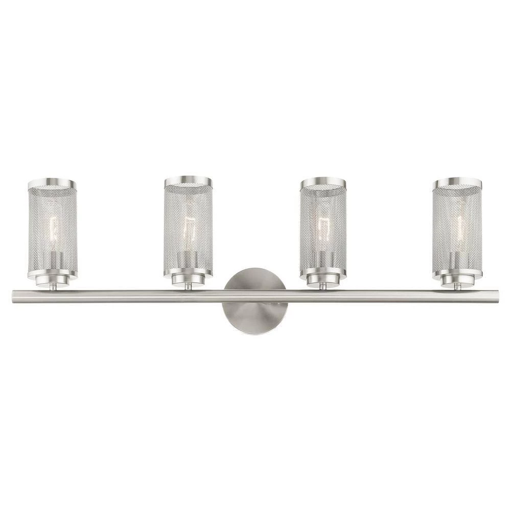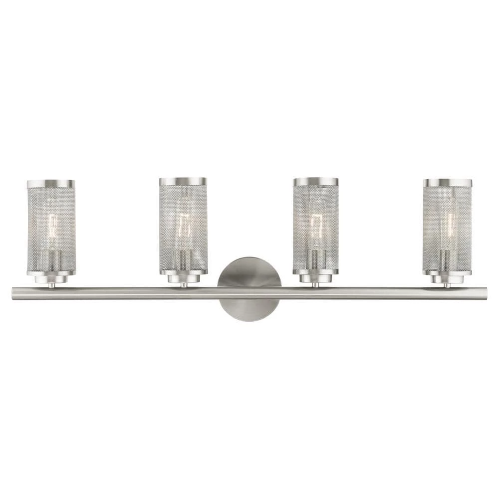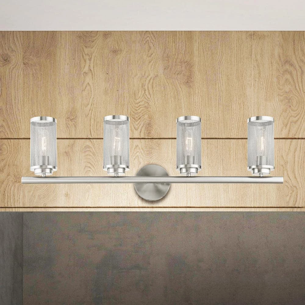 Livex Lighting is well known for quality, style and value. The Industro collection has a clean, crisp look and contemporary appeal. This 4-light vanity sconce has a brushed nickel finish and a sleek stainless steel mesh shade. This vanity sconce easily fits into industrial, transitional or modern classic bathrooms. This well-rounded fixture is sure to satisfy your lighting needs.