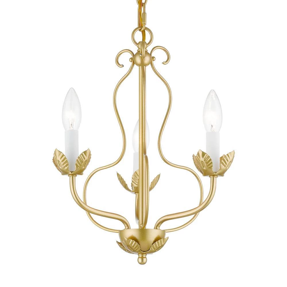 The 3-light Katarina floral chandelier showcases a graceful look. The soft gold finish completes this timeless and casual design. Livex Lighting is well known for quality, style and value.