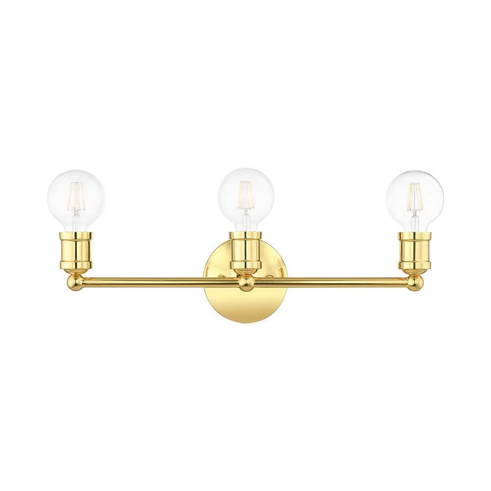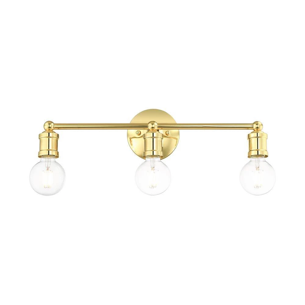 Clean lines and exposed bulb sockets make the Lansdale collection perfect for your mid-mod or transitional bath. The eclectic look is perfect for spaces wanting an urban, minimalistic or industrial touch. With superb craftsmanship and affordable price, this polished brass 3-light vanity sconce is sure to tastefully indulge your extravagant side.