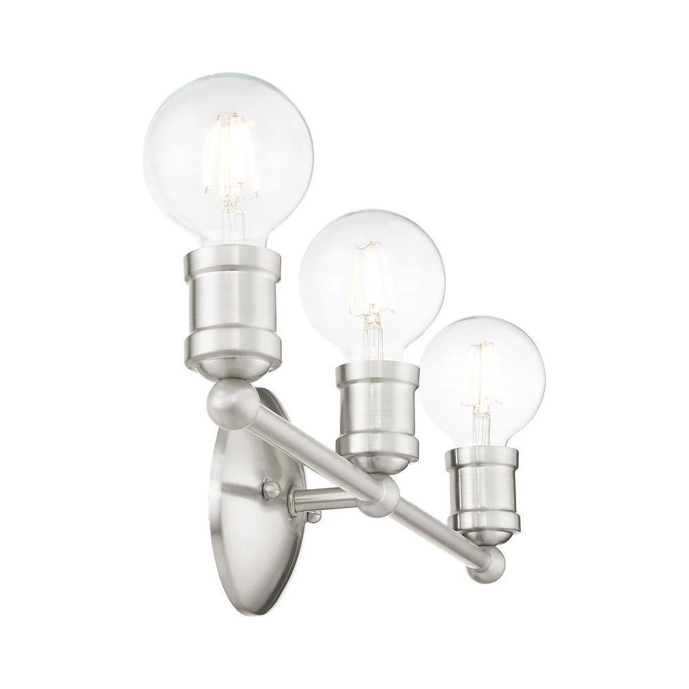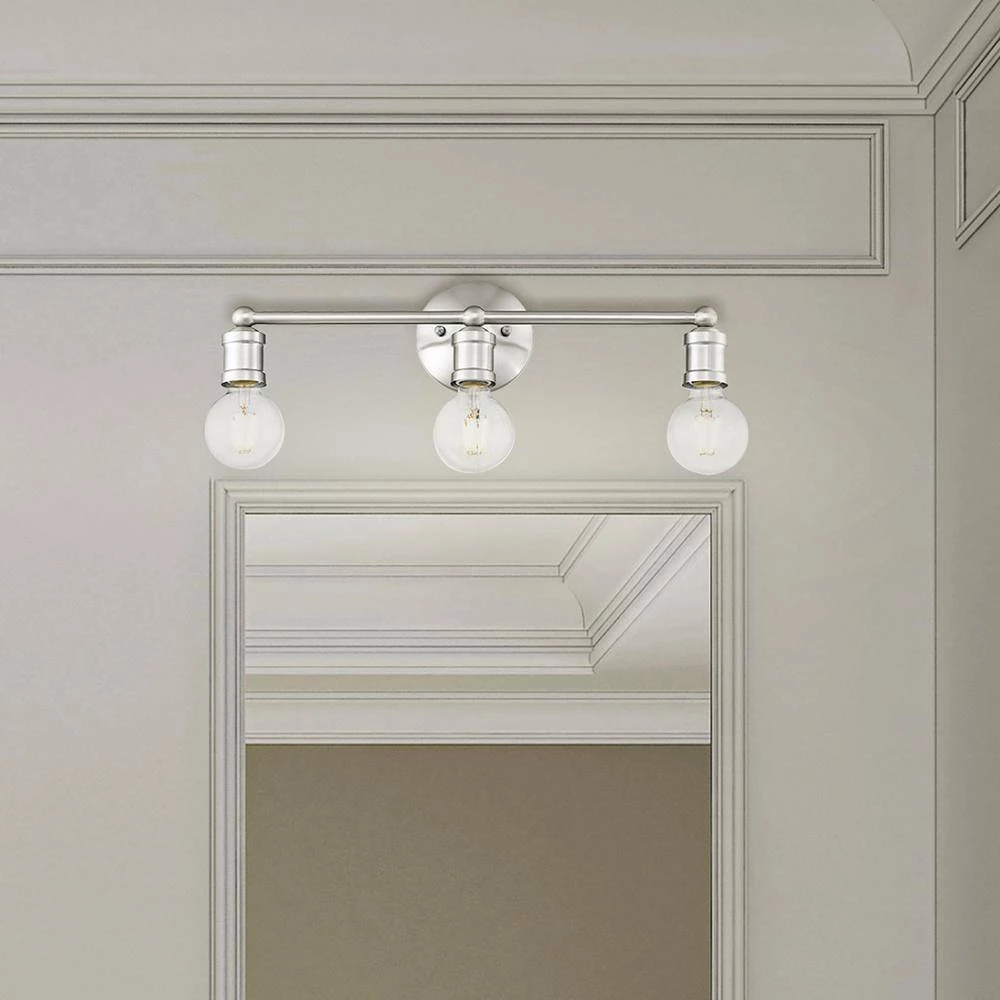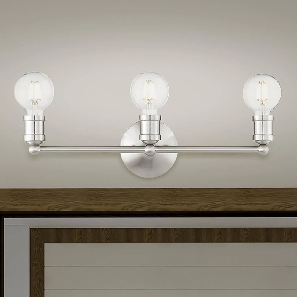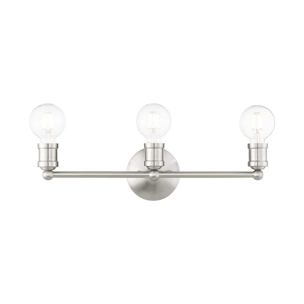 Livex Lighting is well known for quality, style and value. Clean lines and exposed bulb sockets make the Lansdale collection perfect for your mid-mod or transitional bath. The eclectic look is perfect for spaces wanting an urban, minimalistic or industrial touch. With superb craftsmanship and affordable price, this brushed nickel 3-light vanity sconce is sure to tastefully indulge your extravagant side. This well-rounded fixture is sure to satisfy your lighting needs.