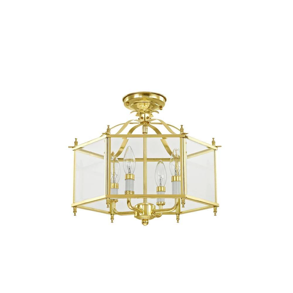 Livex Lighting is well known for quality, style and value. The Livingston collection features a classic six-sided lantern silhouette. Polished brass finish with clear beveled glass gives the fixture charming style and the candelabra bulbs will fill your home with generous amounts of illumination that welcomes your guests. The versatile fixture can be transformed into semi-flush ceiling mounts. This well-rounded fixture is sure to satisfy your lighting needs.