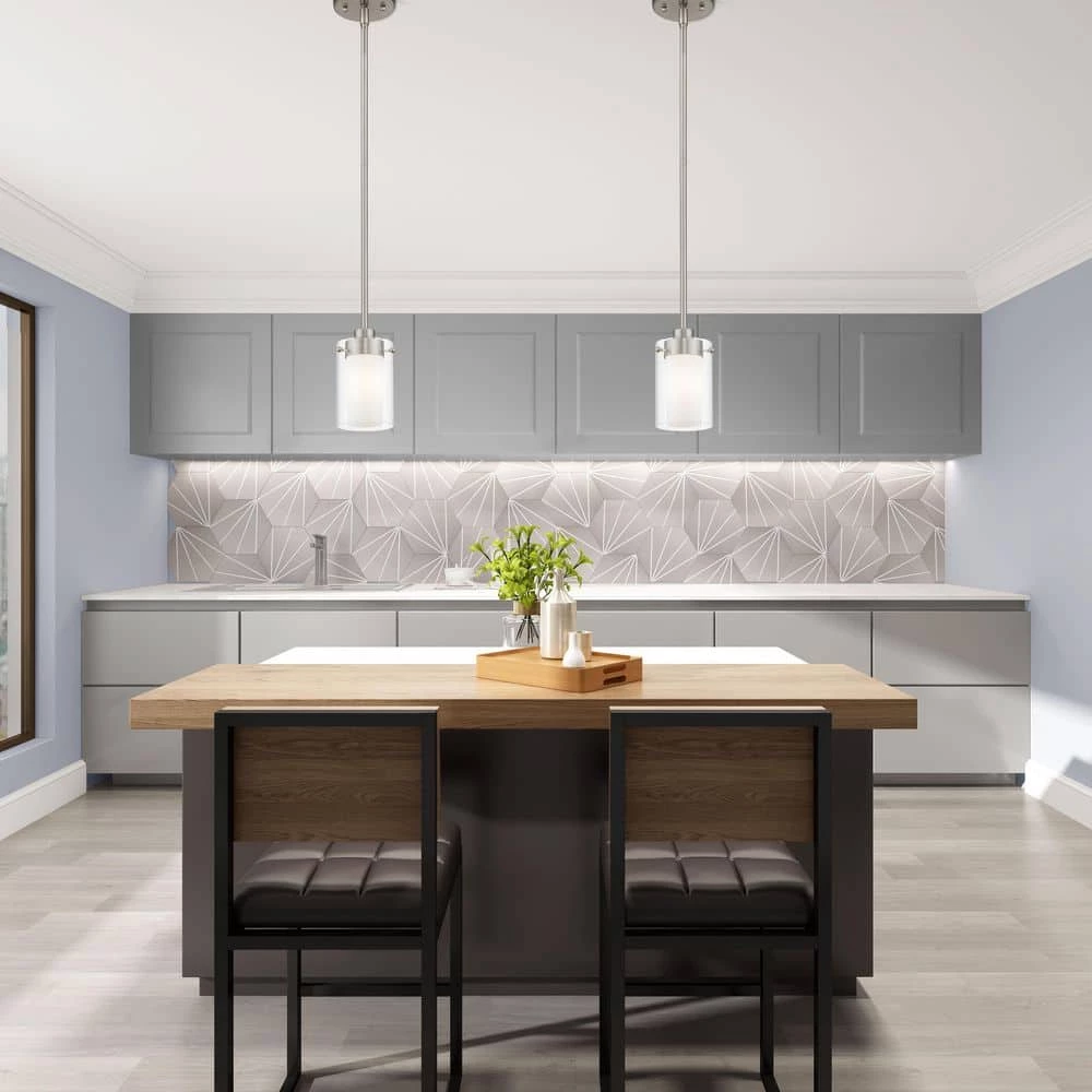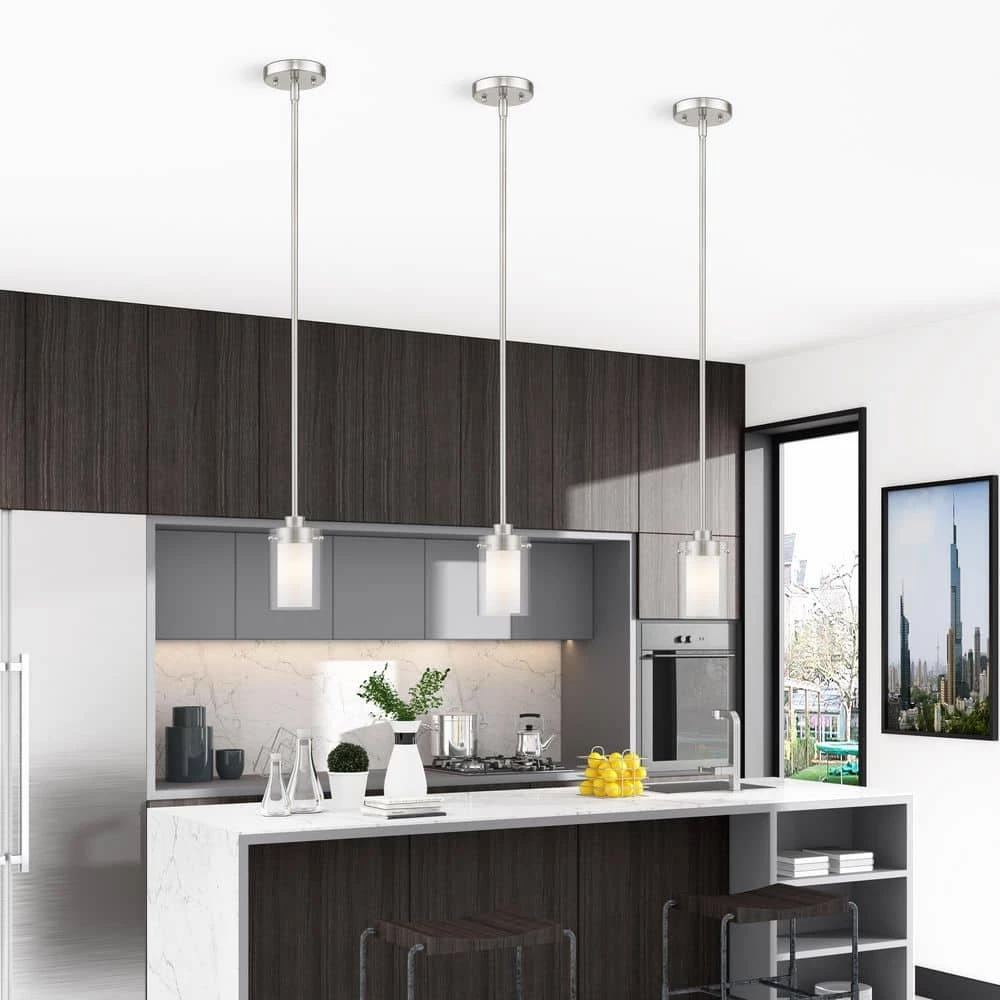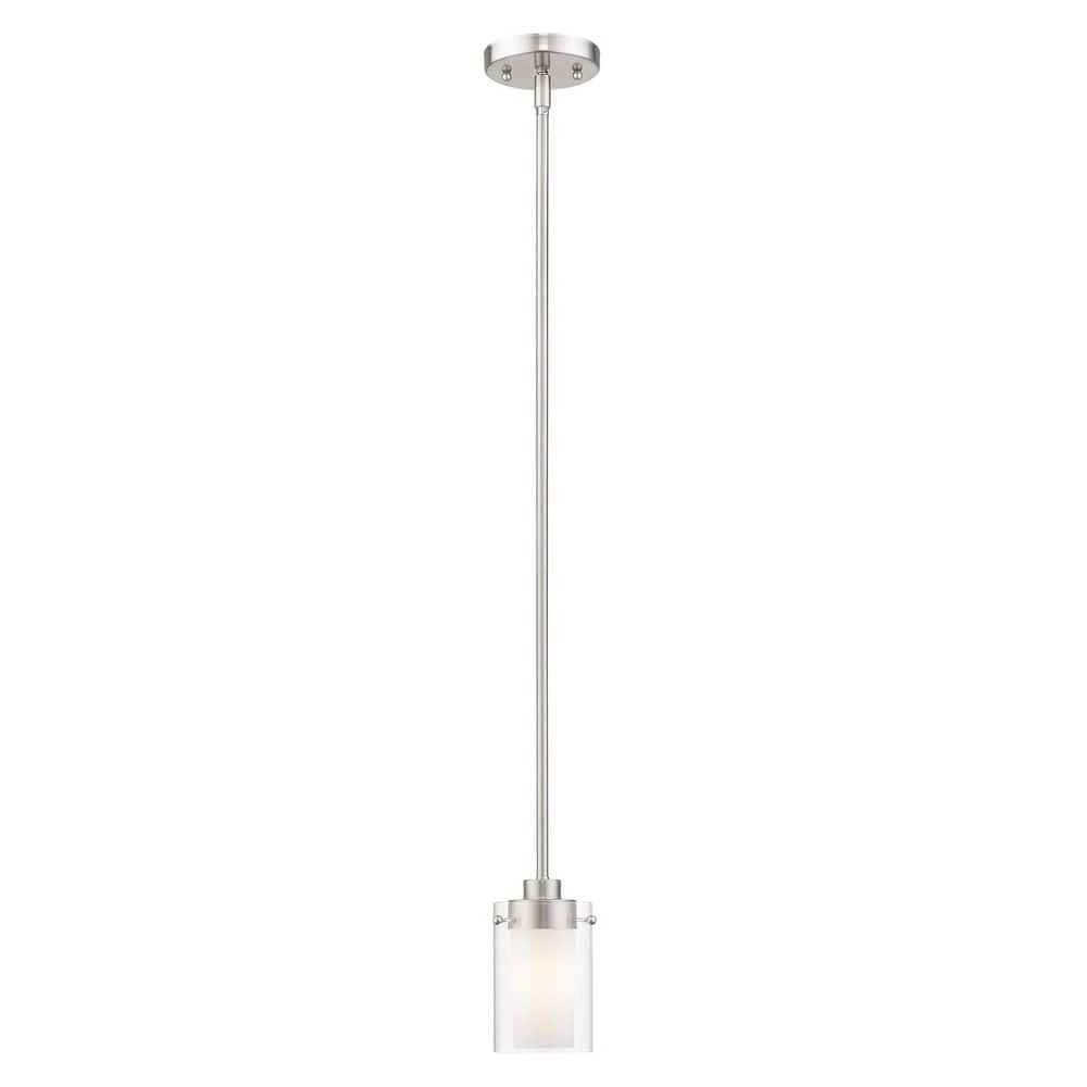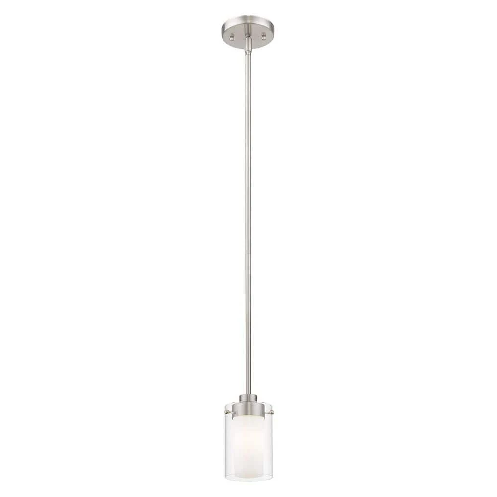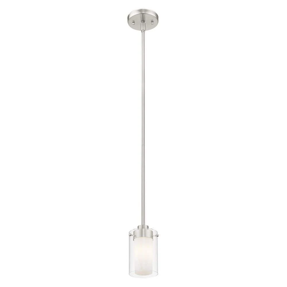 Livex Lighting is well known for quality, style and value. This brushed nickel finish brings sleek sophistication to this contemporary mini pendant. The clean lines are enhanced by the hand blown clear glass cylinders with opal centers. The double layer of glass adds a level of depth and visual interest to this transitional style light fixture. This well-rounded fixture is sure to satisfy your lighting needs.