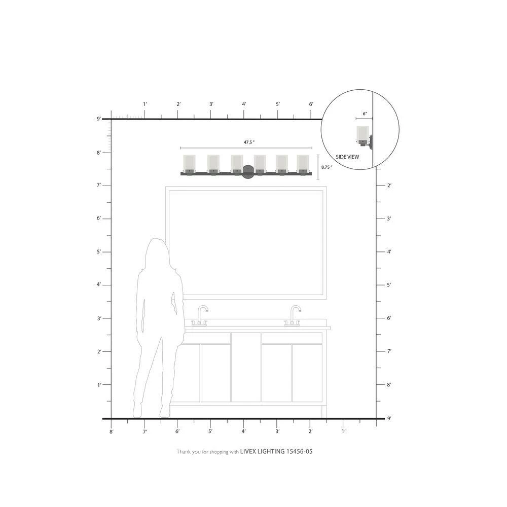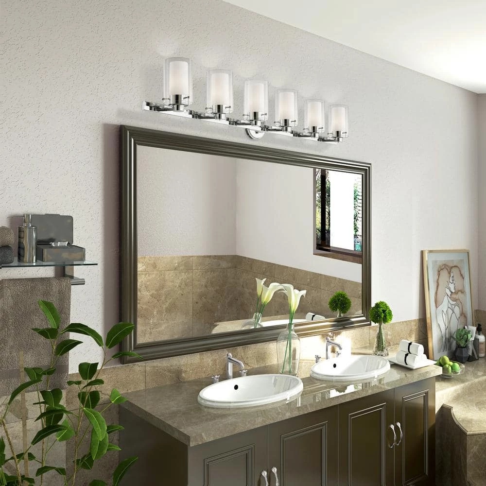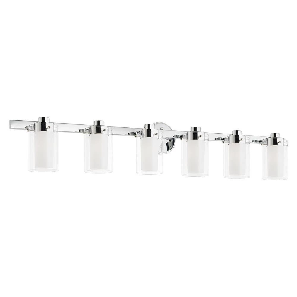 Brighten your space with this Manhattan 6-Light Bath Vanity Light. Layered clear and opal glass shades with a polished chrome finish create a soft glow and a sophisticated visual. With all necessary hardware and instructions, you can easily install this fixture upwards or downwards.