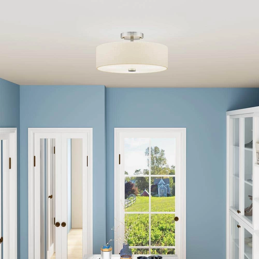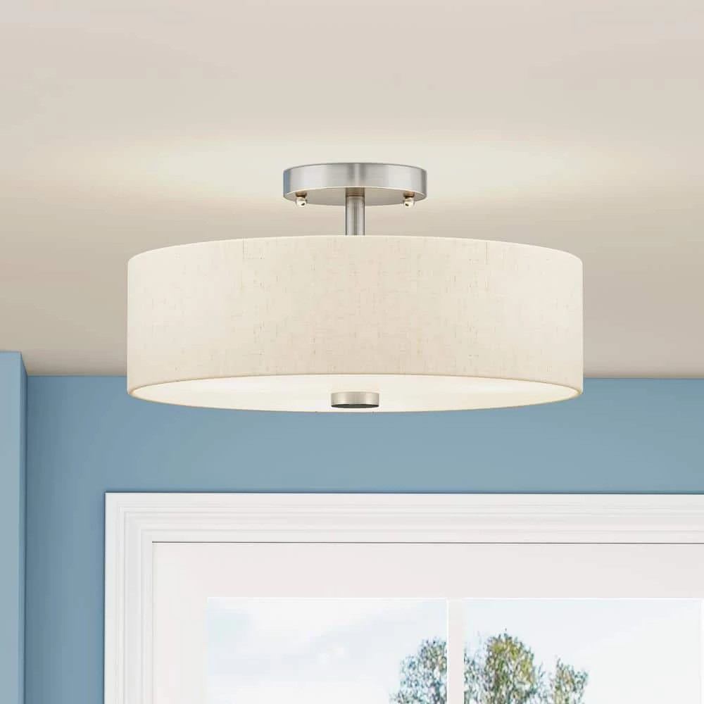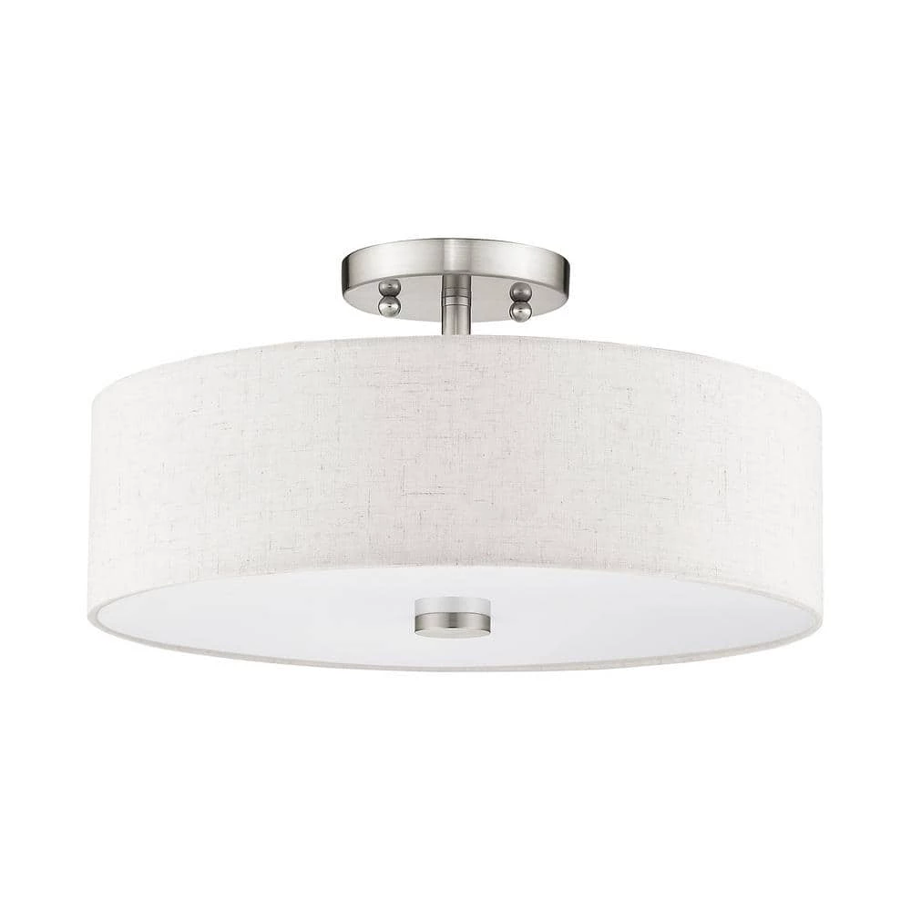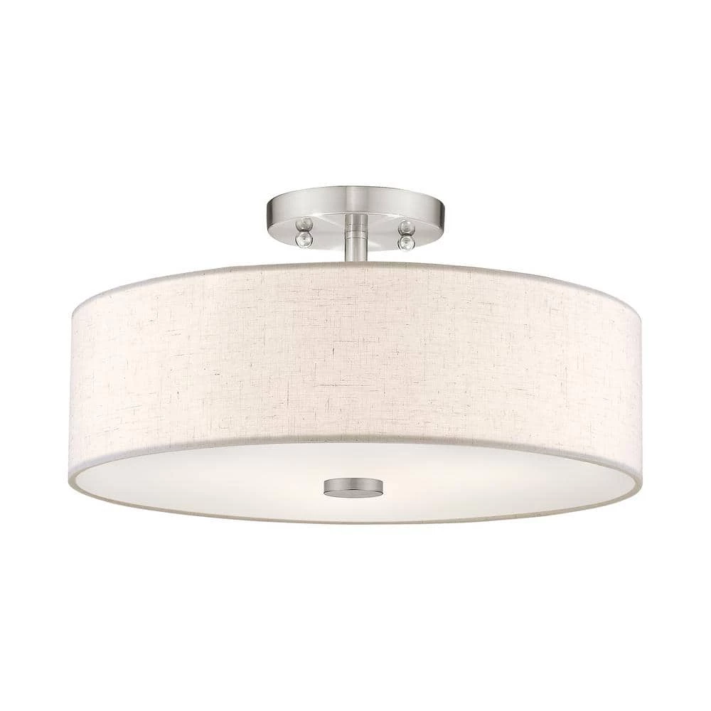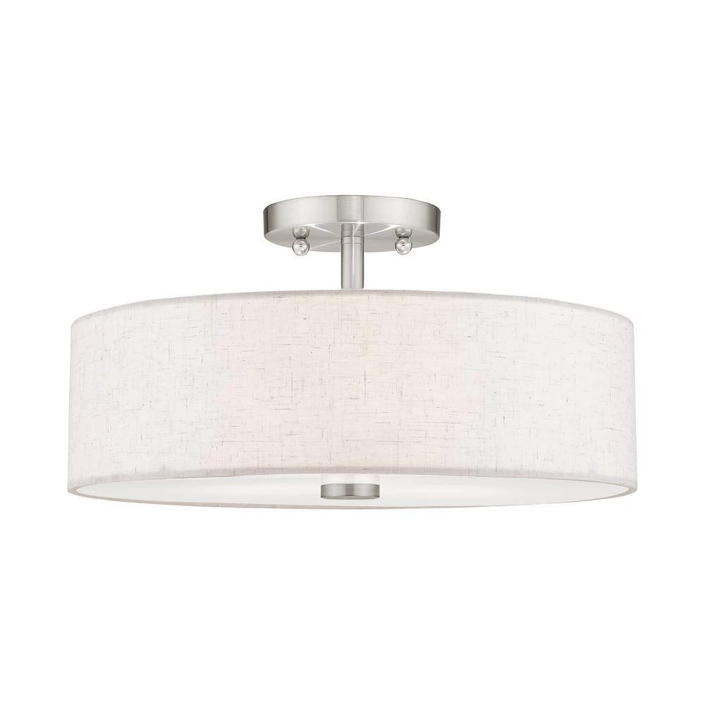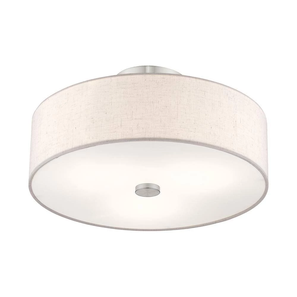 Livex Lighting is well known for quality, style and value. Add style to any room with this elegant semi flush mount. The design features a beautiful hand crafted oatmeal fabric hardback drum shade in a stylish brushed nickel. This well-rounded fixture is sure to satisfy your lighting needs.