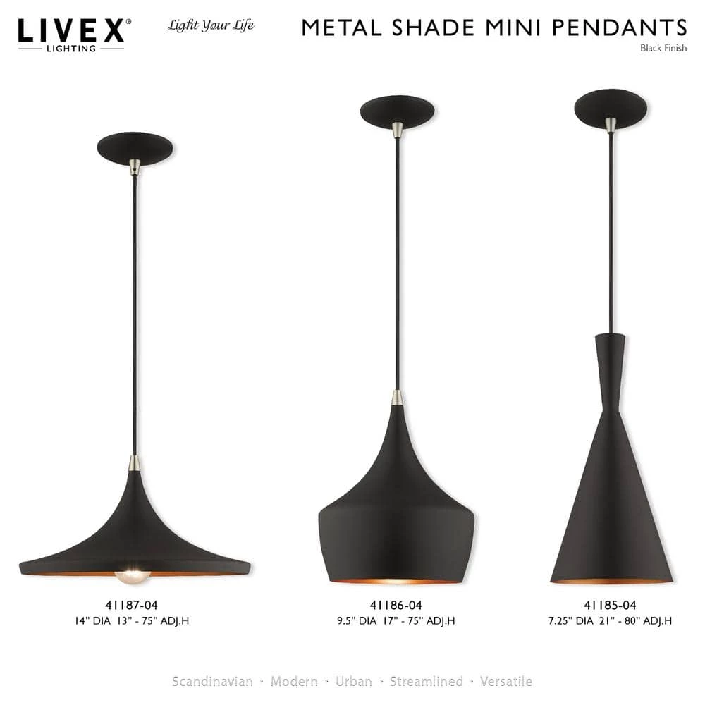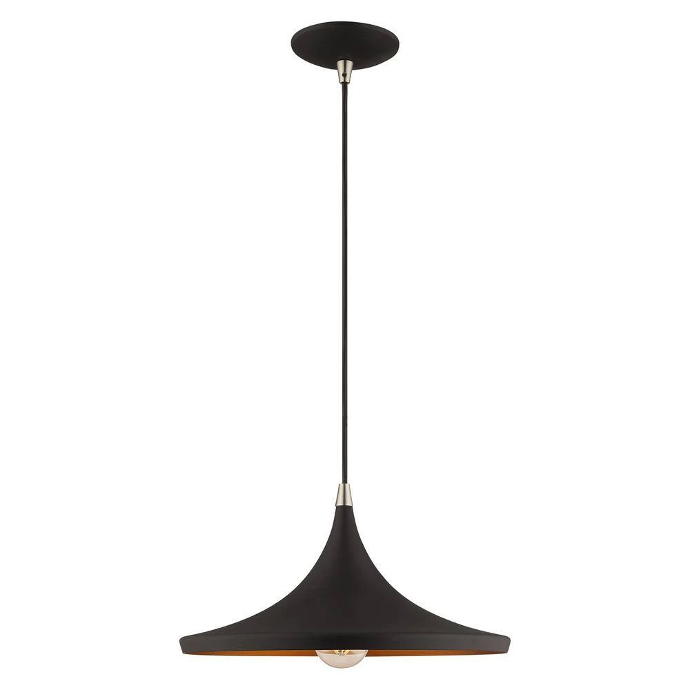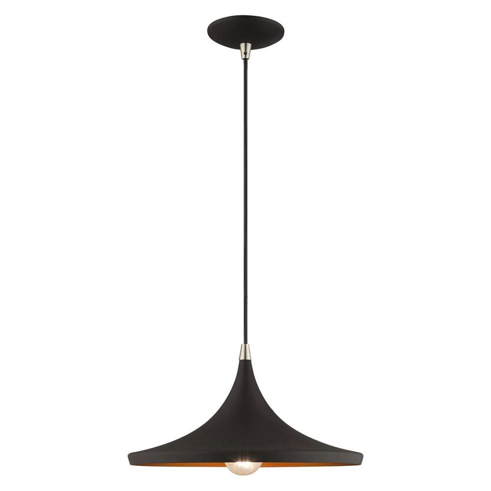 Livex Lighting is well known for quality, style and value. Combining a black color with a gold finish inside, this mid century modern mini pendant light will illuminate contemporary decor beautifully. Ideal above a kitchen island or entryway, this design features a wide disc shape complementing the contemporary look. This well-rounded fixture is sure to satisfy your lighting needs.