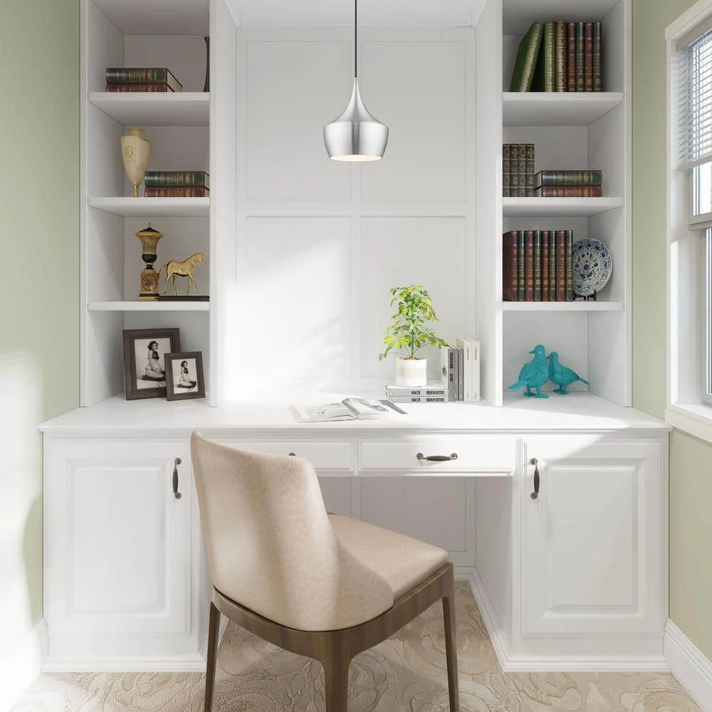 - Equipped with brushed aluminum metal shade with shiny white finish inside