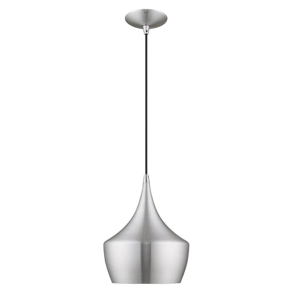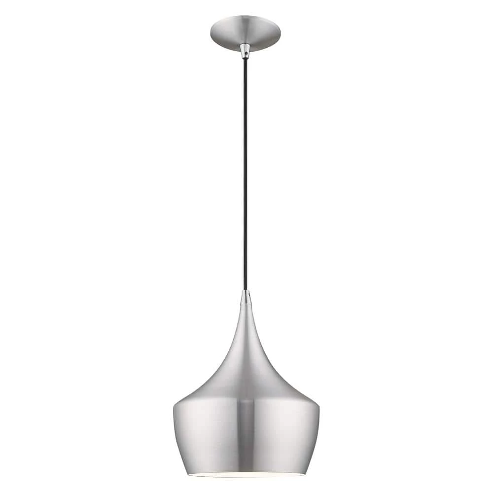 Livex Lighting is well known for quality, style and value. The distinctive shape of this brushed aluminum mini pendant makes it a wonderful accent for a contemporary home. Inside the shade is a white lining which gives the light a bright tone. This well-rounded fixture is sure to satisfy your lighting needs.