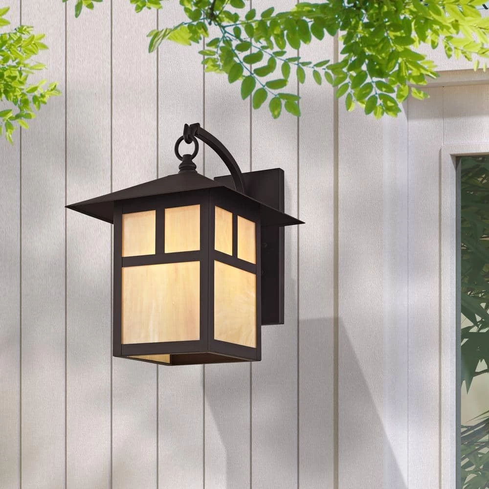 Livex Lighting is well known for quality, style and value. Bright, iridescent tiffany glass and bold lines put a fresh spin on a classic look in this beautiful Montclair Mission style outdoor wall lantern. Made from solid brass and finished in bronze, the top hanging lantern is attached to the backplate by a graceful, curved arm. T-bar overlay linear details on the frame give it an architectural window-inspired look. This well-rounded fixture is sure to satisfy your lighting needs.