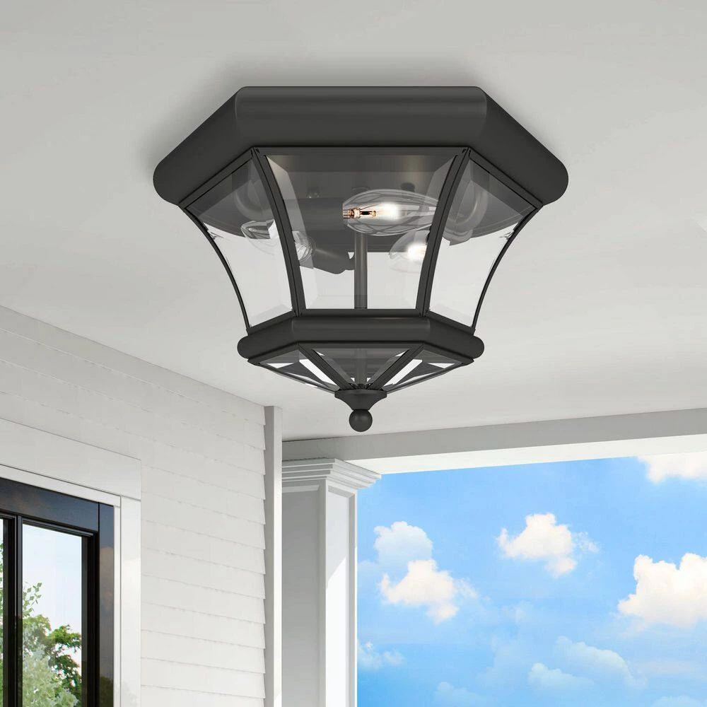 Livex Lighting is well known for quality, style and value. This outdoor ceiling mount lantern features clean, crisp lines complemented by the graceful curves of glass. Handsome colonial styling makes this fixture a perfect addition to your outdoor spaces. Crafted from sturdy solid brass. This well-rounded fixture is sure to satisfy your lighting needs.