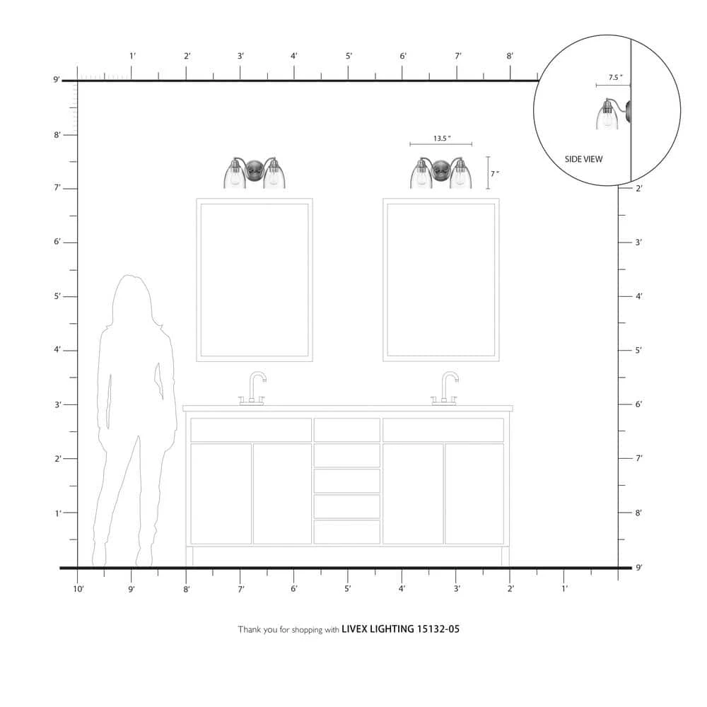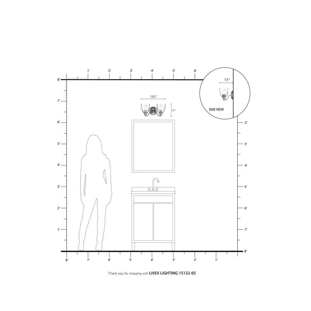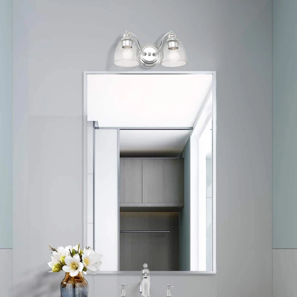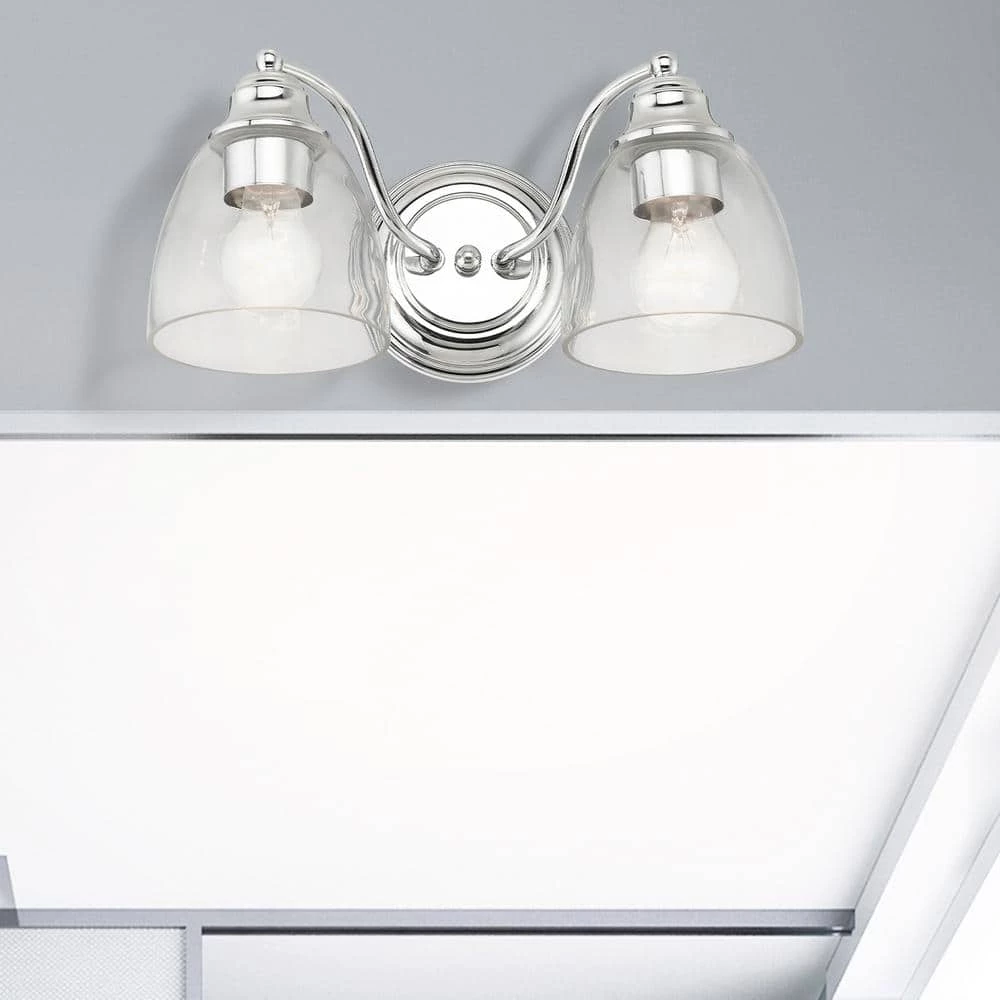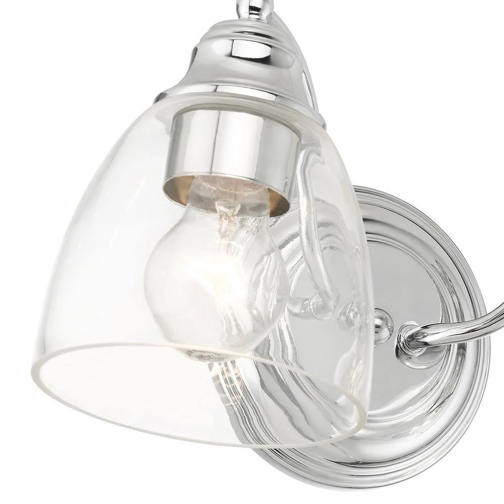 Livex Lighting is well known for quality, style and value. Whether it’s style or practical lighting, this vanity sconce is the perfect addition to your bathroom. This 2-light fixture from the Montgomery Collection features clear hand-blown glass shades and is shown in a polished chrome finish. The clean graceful lines of the back plate complement the shades, creating an understated look that works well in most decors. Classic elegance combines with contemporary appeal to enhance any home in style. This well-rounded fixture is sure to satisfy your lighting needs.