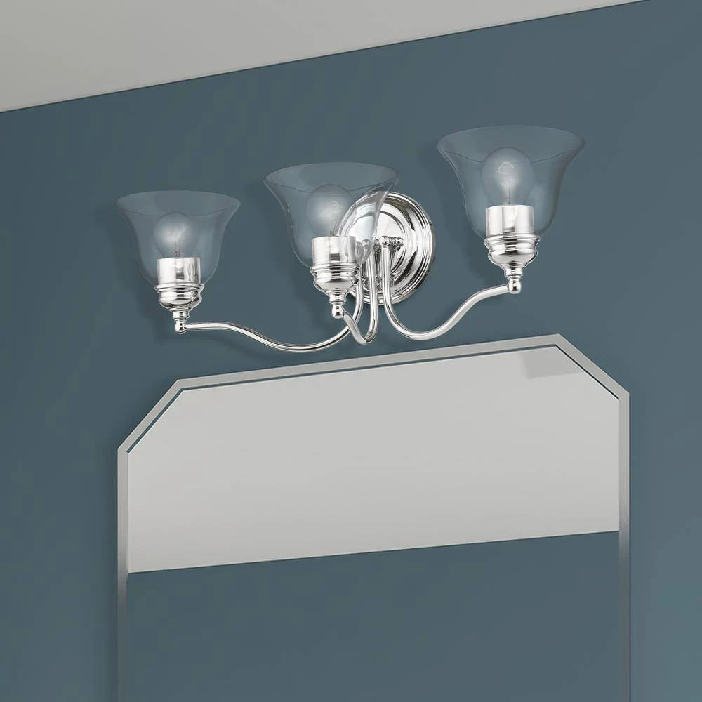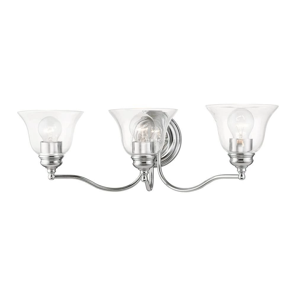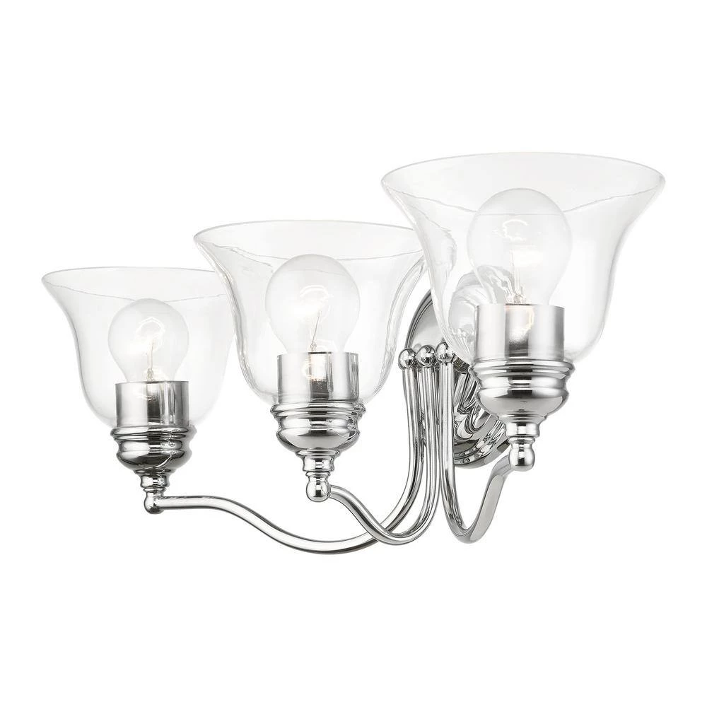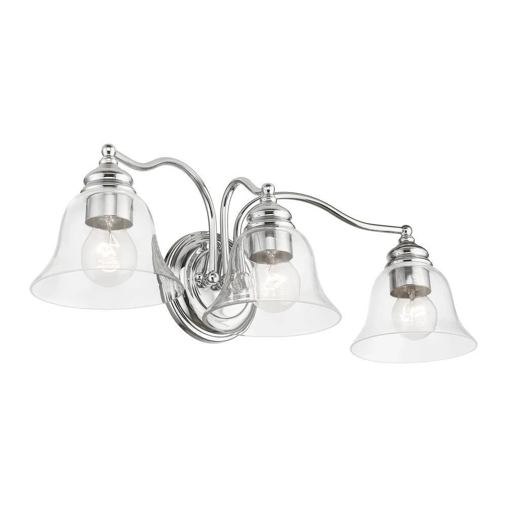 Livex Lighting is well known for quality, style and value. Bring a refined lighting style to your bath area with this Moreland collection 3-light vanity sconce. Shown in a polished chrome finish and clear glass.