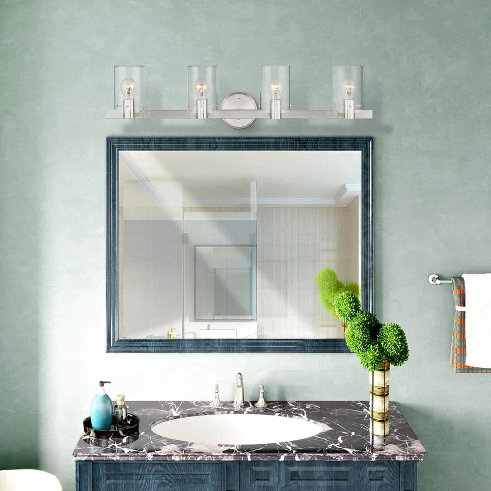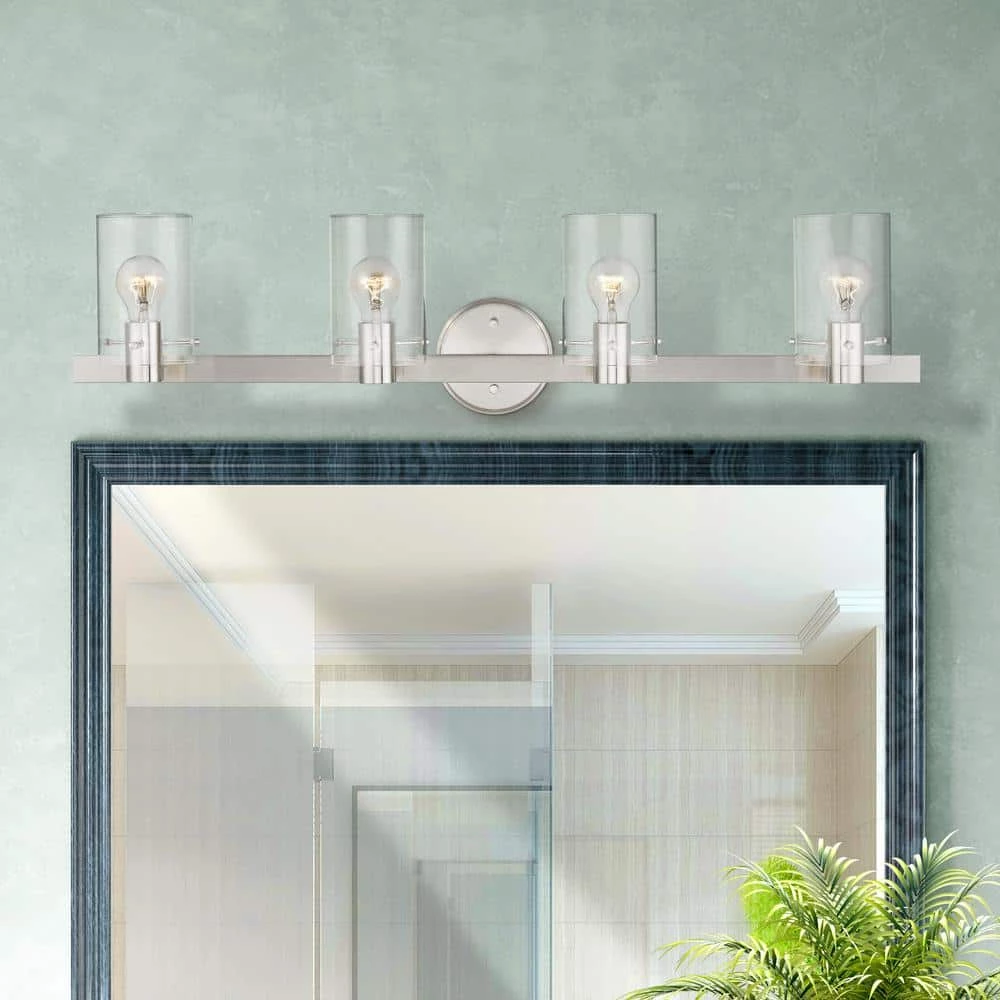 Livex Lighting is well known for quality, style and value. The Munich transitional 4-light vanity sconce will bring posh sophistication to your decor. The backplate and clear cylinder glass give this brushed nickel finish a sleek, contemporary look.
