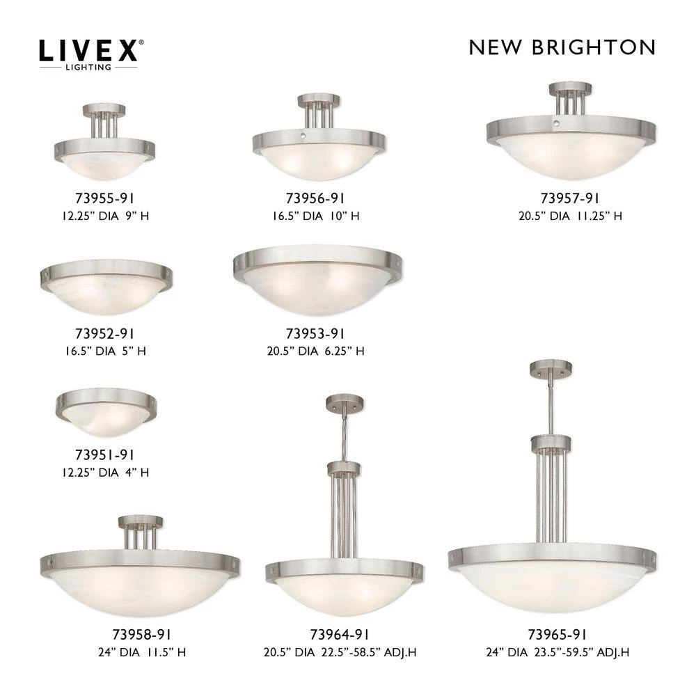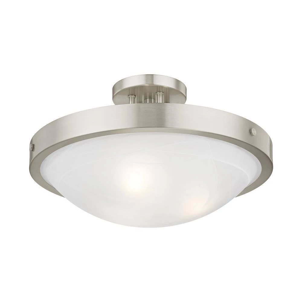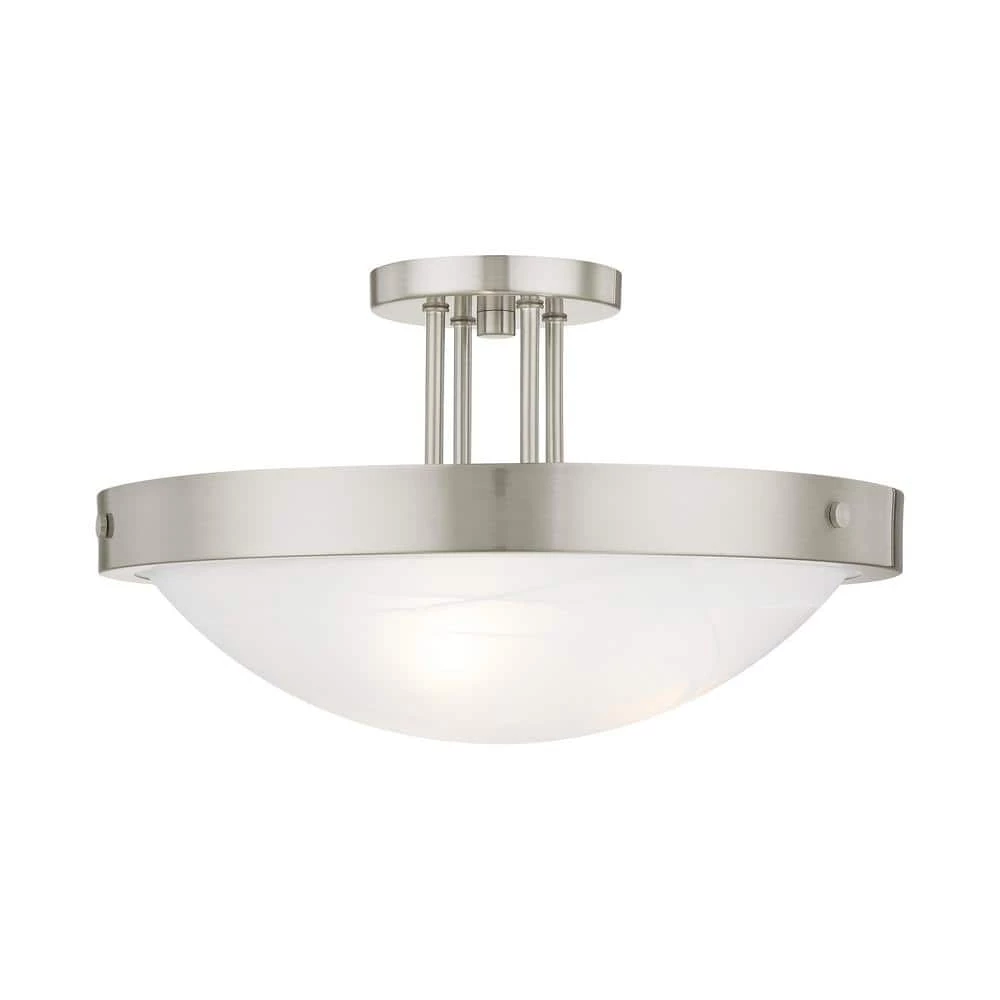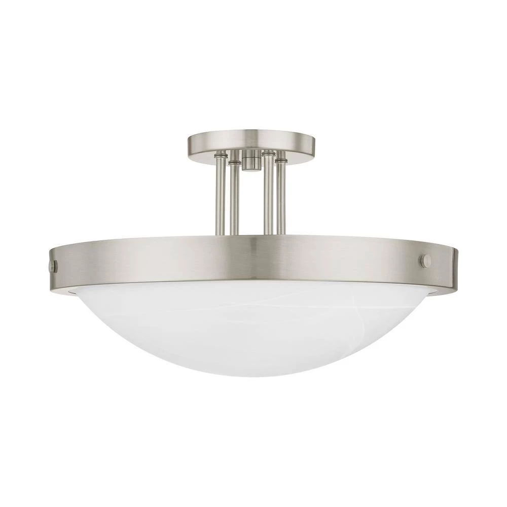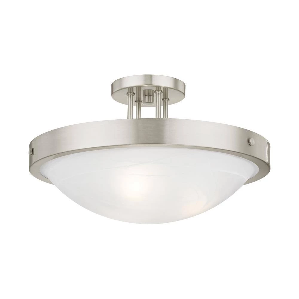 Livex Lighting is well known for quality, style and value. Classic and inviting, this semi flush mount works well with any style of decor. Finished in brushed nickel with white alabaster glass for soft illumination. This well-rounded fixture is sure to satisfy your lighting needs.