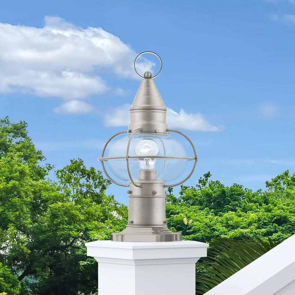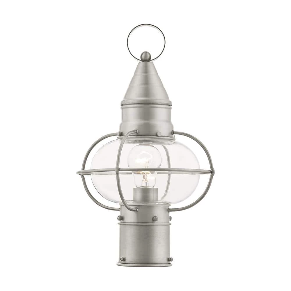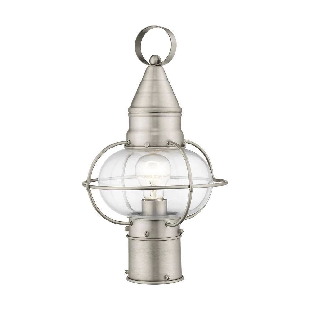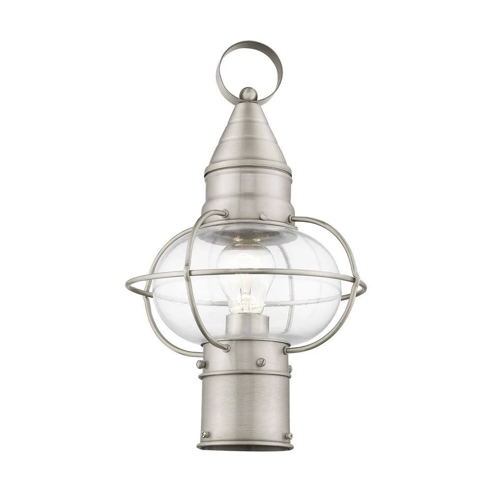 Livex Lighting is well known for quality, style and value. The Newburyport outdoor post lantern boasts classic nautical and railway styling with a beautiful hand blown clear glass globe and a brushed nickel finish over the solid brass construction. This well-rounded fixture is sure to satisfy your lighting needs.