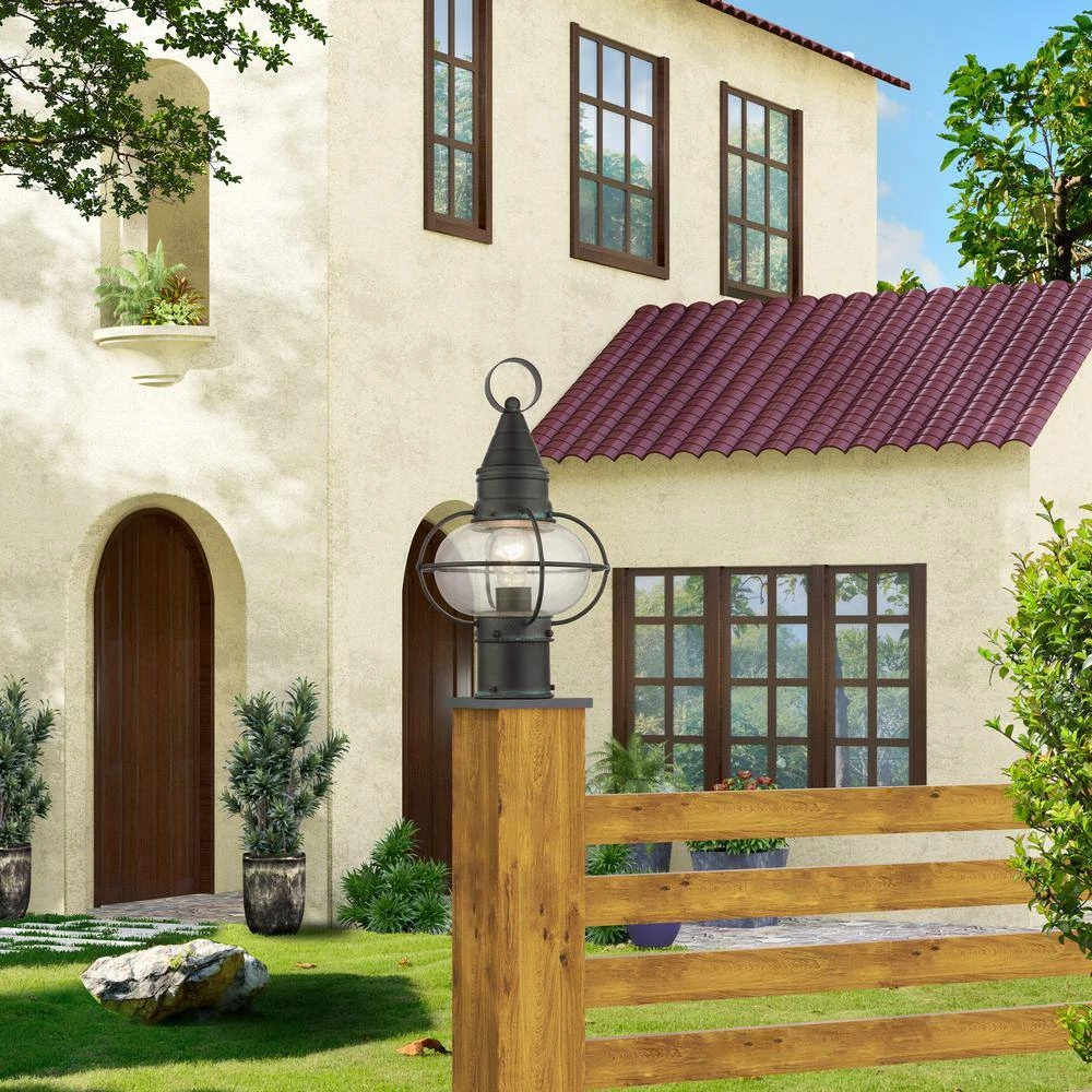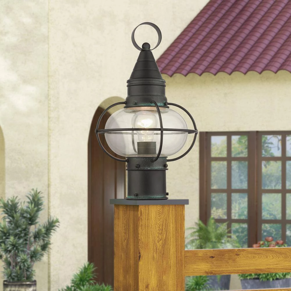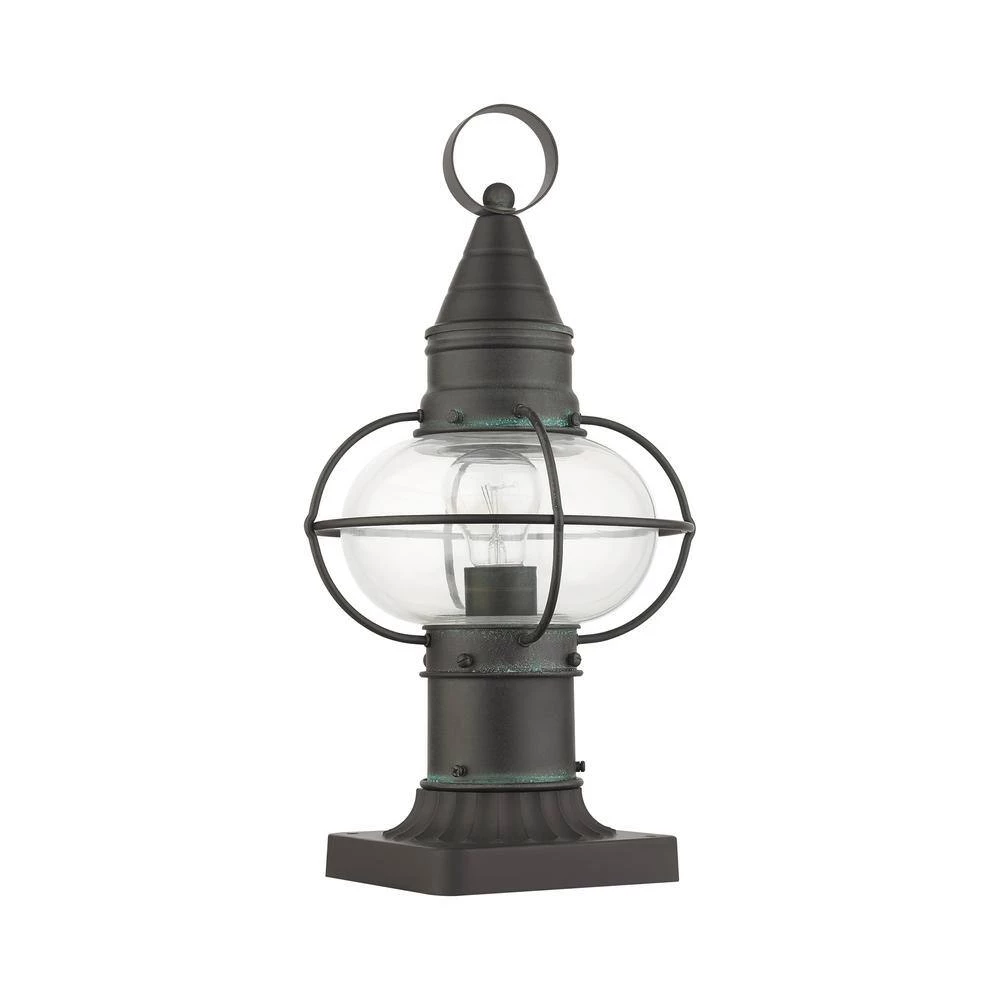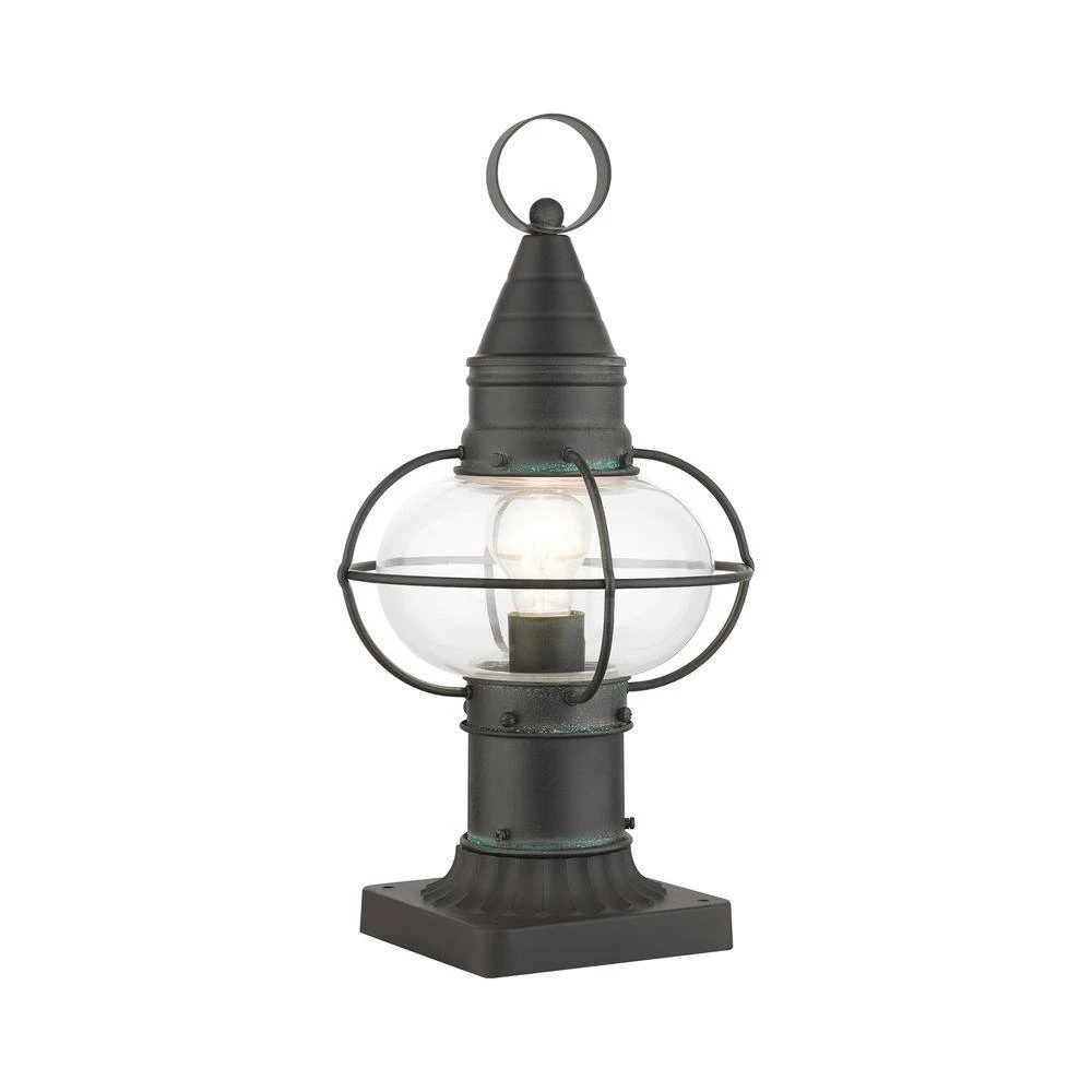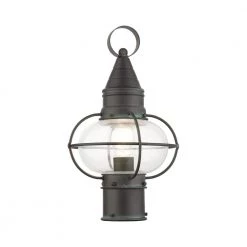 Livex Lighting is well known for quality, style and value. The Newburyport outdoor medium single-light post top lantern boasts classic nautical and railway styling. This piece features a beautiful hand-blown clear glass globe and a charcoal finish over the hand crafted solid brass construction. With its easy installation and low upkeep requirements, this light will not disappoint. This well-rounded fixture is sure to satisfy your lighting needs.