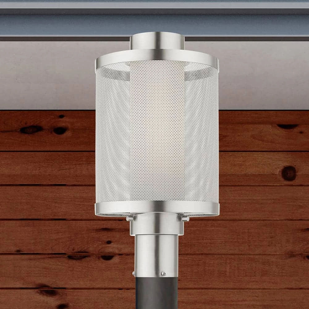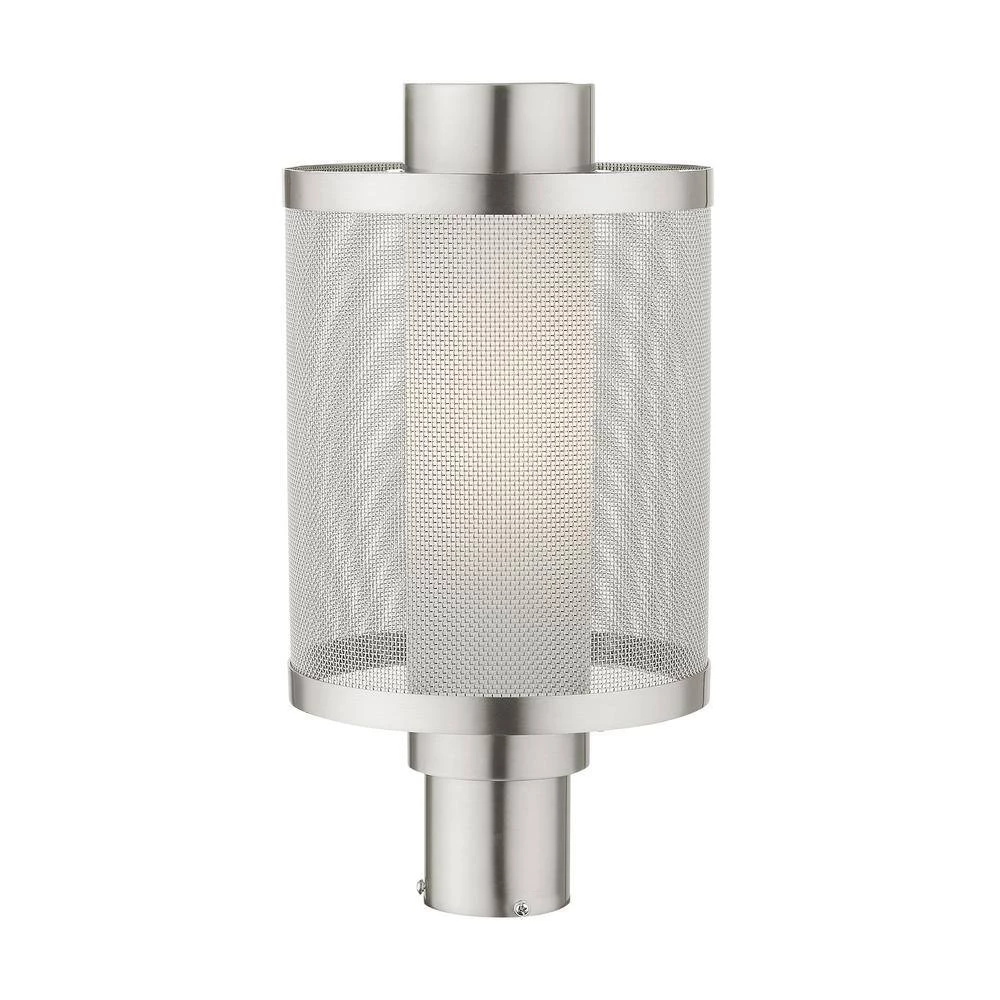 Livex Lighting is well known for quality, style and value. The Nottingham outdoor collection has a clean, crisp look and contemporary appeal. This single light stainless steel large post top lantern has a brushed nickel finish and features a sleek stainless steel mesh shade with satin opal white glass. This well-rounded fixture is sure to satisfy your lighting needs.