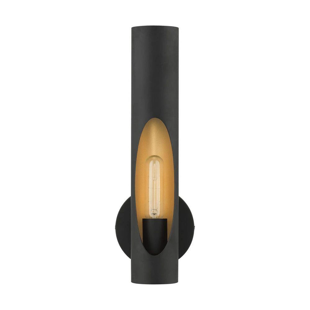 The minimalistic Novato collection was inspired by the industrial landscape of metropolitan cities across Europe and Asia. Tubular shapes are interrupted by clever cutouts to create a visually interesting light distribution. This single light black finish sconce will integrate into a contemporary, minimal, urban or sleek interior design setting.