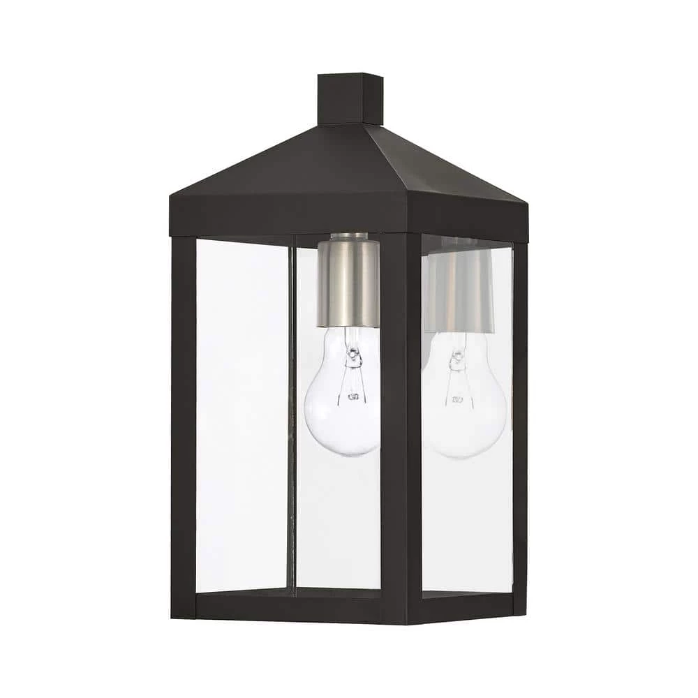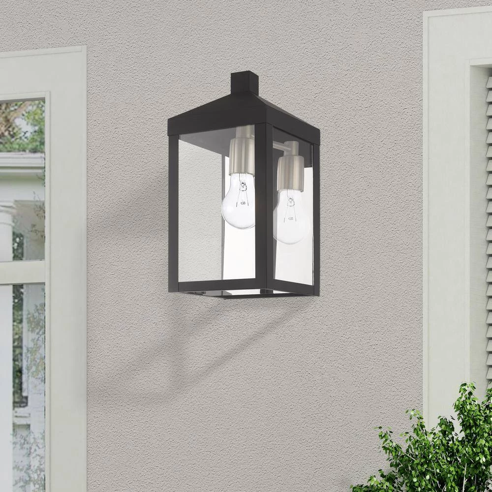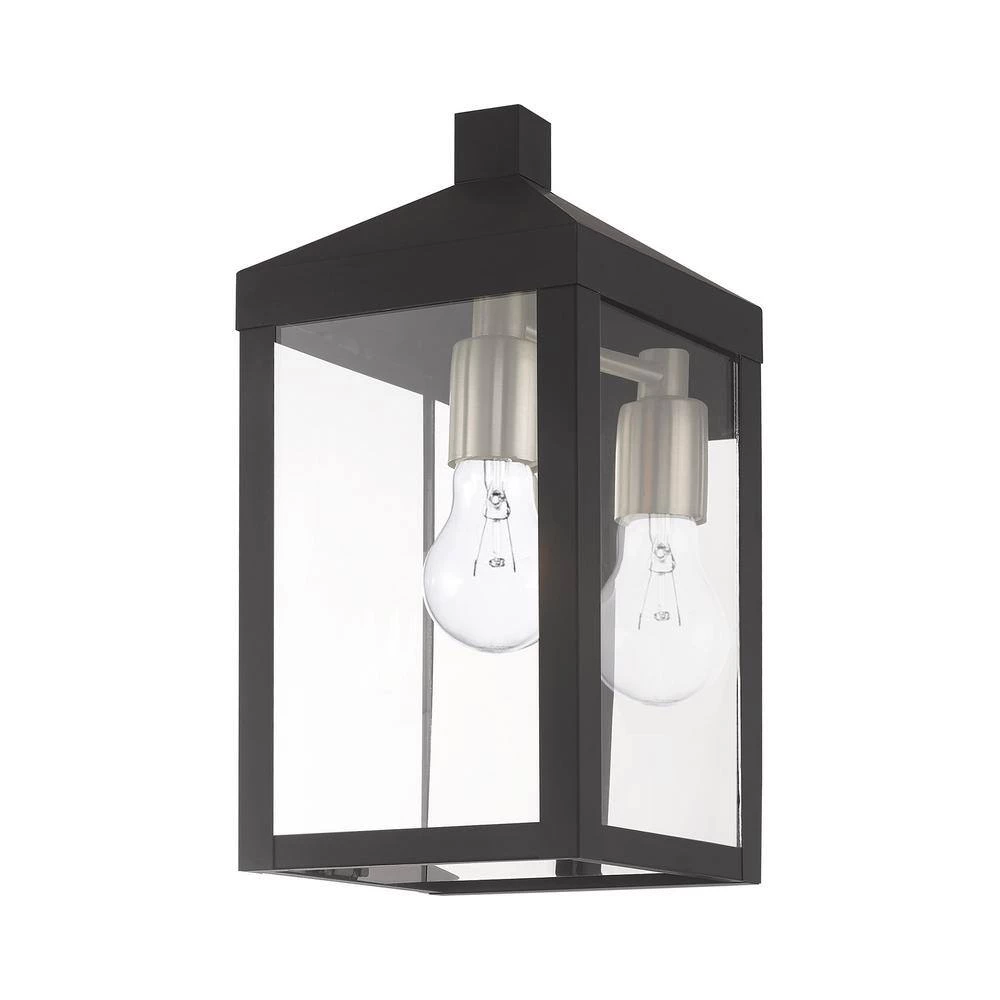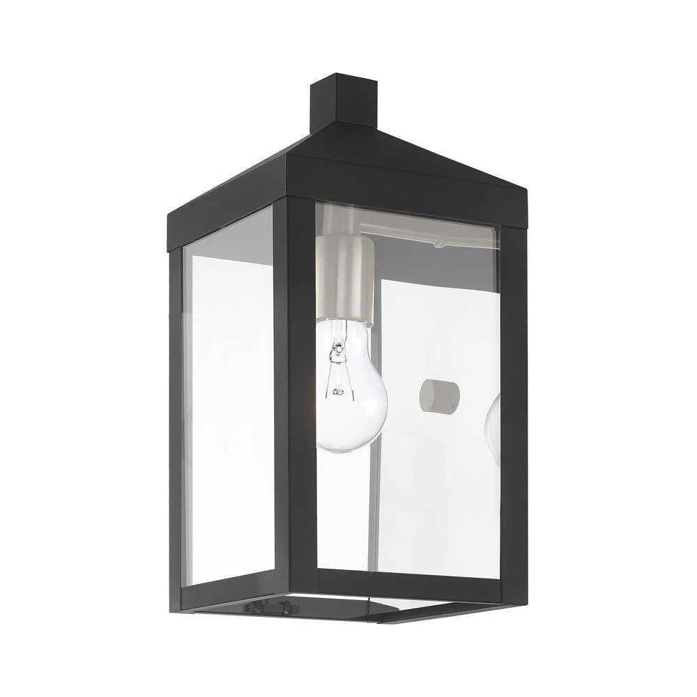 Livex Lighting is well known for quality, style and value. The dramatically simple shape and bold lines help define our Nyack wall lantern. Featured in a black finish, this outdoor wall lantern has panels of clear glass. This well-rounded fixture is sure to satisfy your lighting needs.