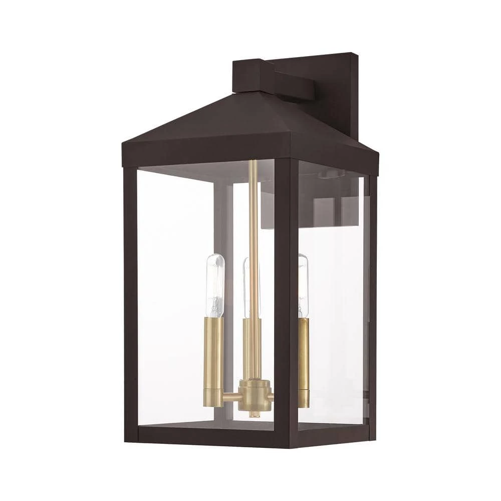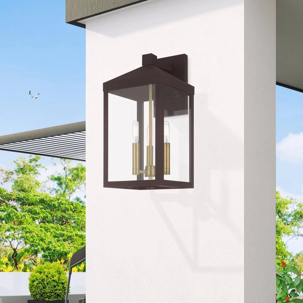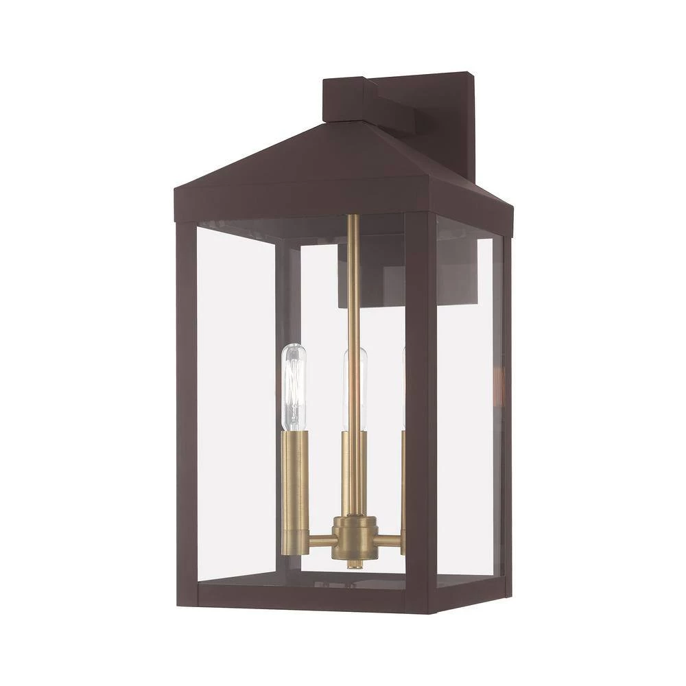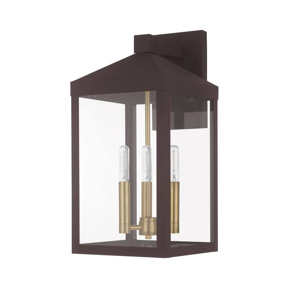 The dramatically simple shape and bold lines help define our Nyack wall lantern. Featured in a bronze finish, this outdoor wall lantern has panels of clear glass. With the superb craftsmanship and affordable price this fixture is sure to tastefully indulge your extravagant side.