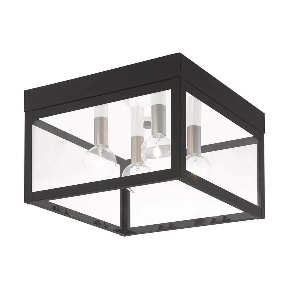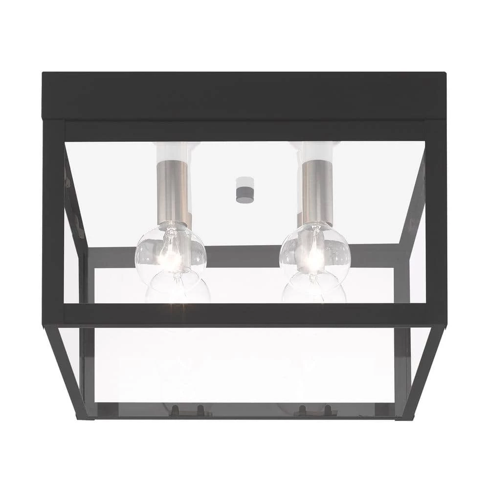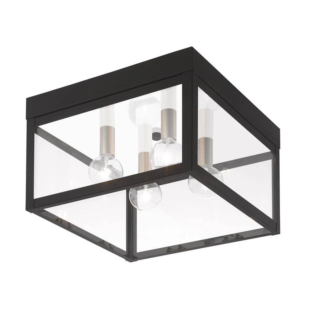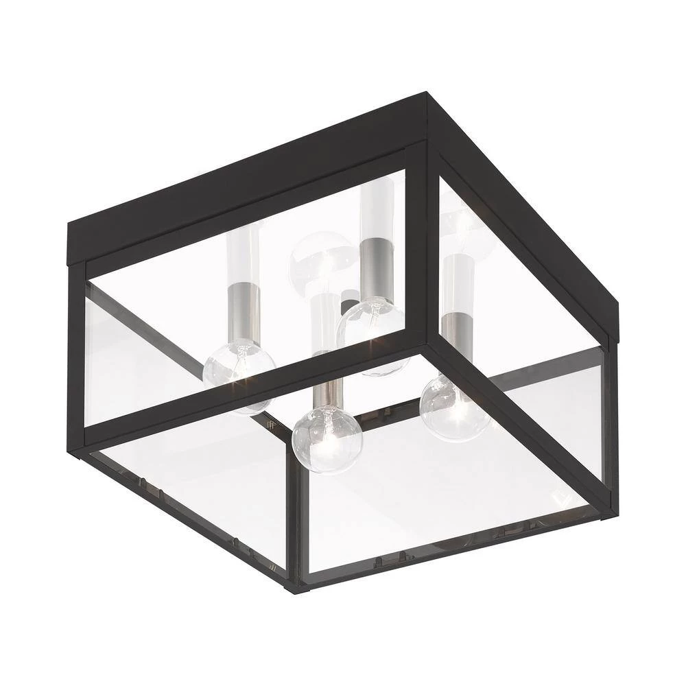 The dramatically simple shape and bold lines help define our Nyack ceiling mount. Featured in a black finish, this outdoor ceiling mount has panels of clear glass. with the superb craftsmanship and affordable price this fixture is sure to tastefully indulge your extravagant side.