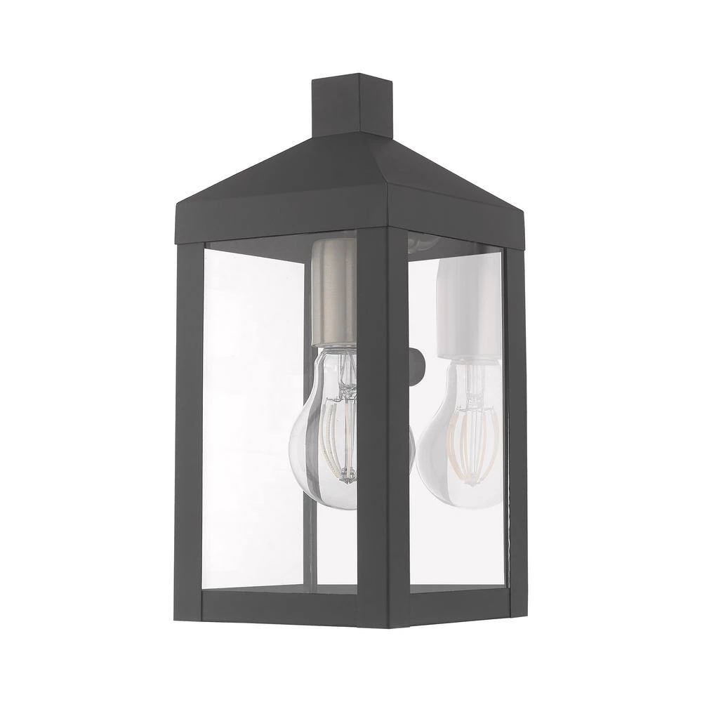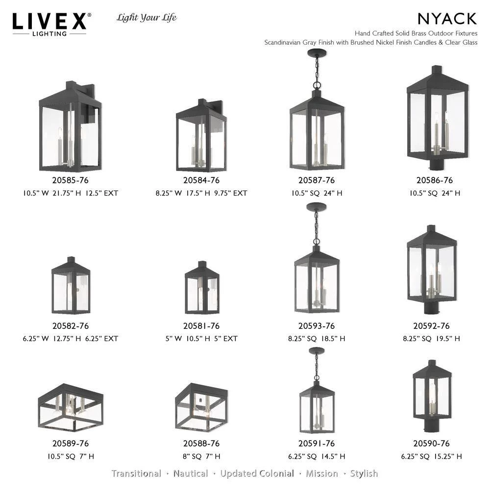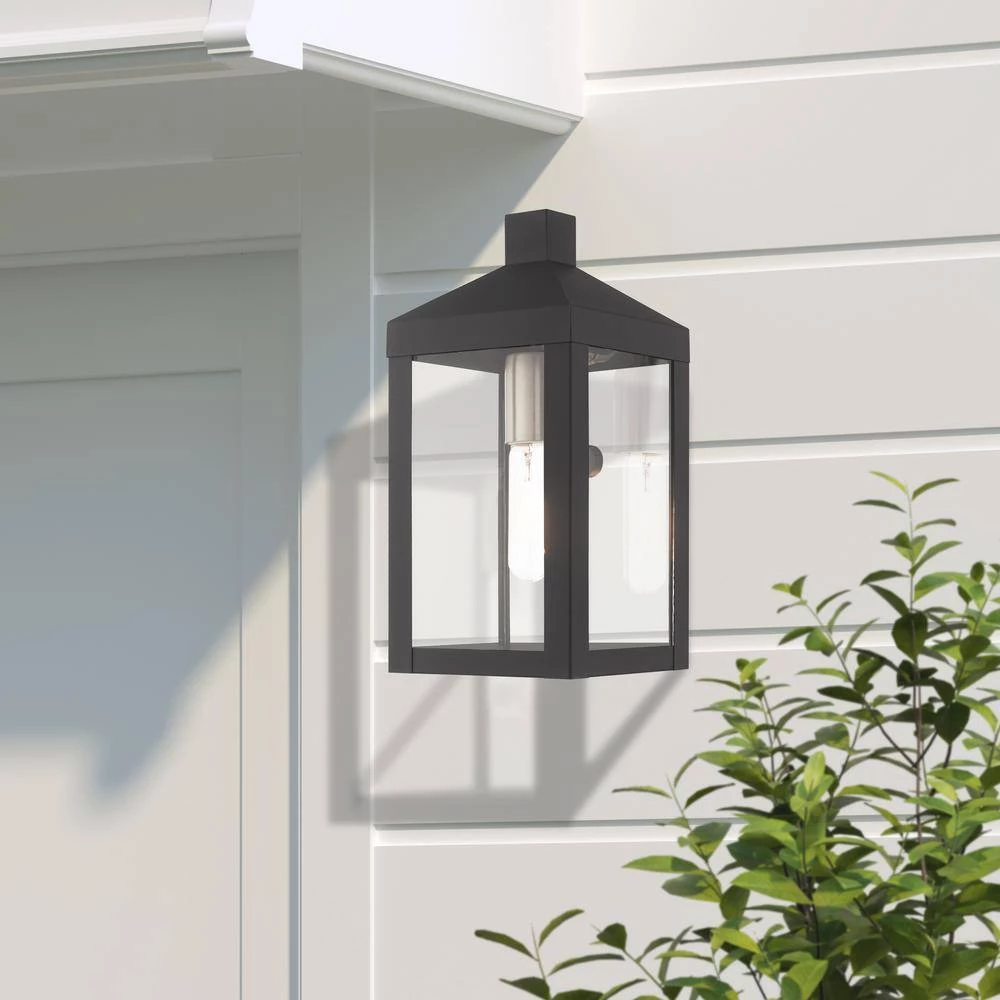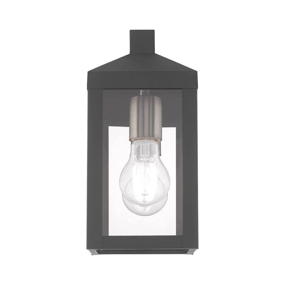 The dramatically simple shape and bold lines help define our Nyack wall lantern. Featured in a Scandinavian gray finish with panels of clear glass. With the superb craftsmanship and affordable price this fixture is sure to tastefully indulge your extravagant side.