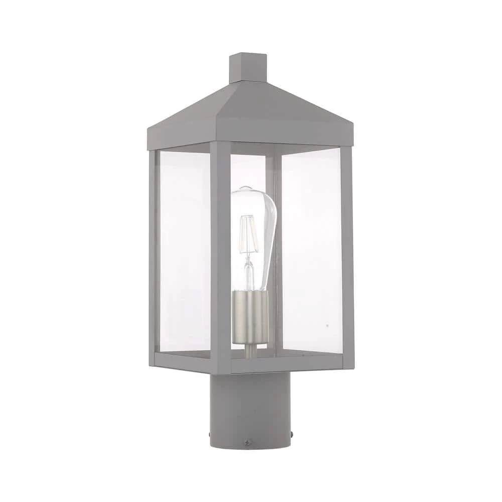 The dramatically simple shape and bold lines help define our Nyack post top lantern. Featured in a Nordic gray finish with panels of clear glass. With the superb craftsmanship and affordable price this fixture is sure to tastefully indulge your extravagant side.
