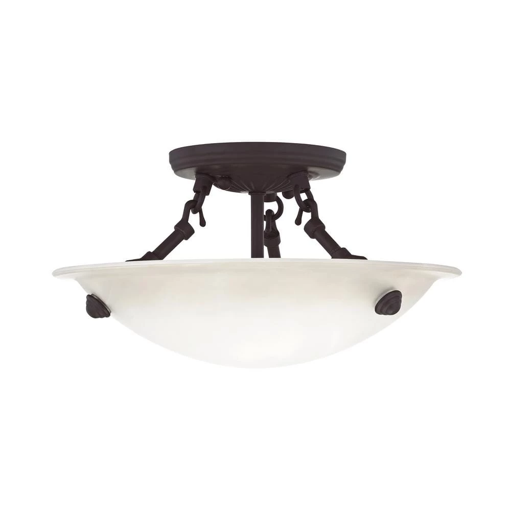 Livex Lighting is well known for quality, style and value. This semi flush features contour lines and a bowed profile. With an understated design, this piece is perfect for any space in your home. Featuring a honey alabaster glass and bronze finish, this fixture will effortlessly blend with your existing decor. This well-rounded fixture is sure to satisfy your lighting needs.