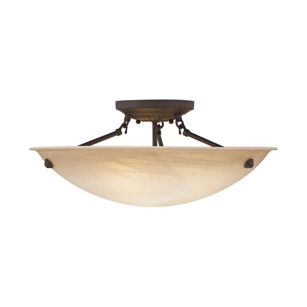 Livex Lighting is well known for quality, style and value. This semi flush features contour lines and a bowed profile. With an understated design, this piece is perfect for any space in your home. Featuring a honey alabaster glass and bronze finish, this fixture will effortlessly blend with your existing decor. This well-rounded fixture is sure to satisfy your lighting needs.