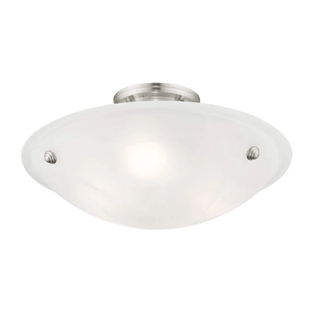 Livex Lighting is well known for quality, style and value. This ceiling mount features contour lines and a bowed profile. With an understated design, this piece is perfect for any space in your home. Featuring a white alabaster glass and brushed nickel finish, this fixture will effortlessly blend with your existing decor. This well-rounded fixture is sure to satisfy your lighting needs.
