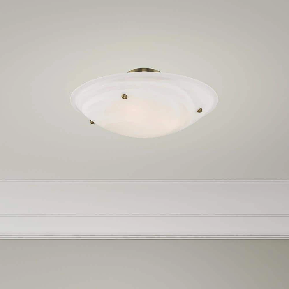 Livex Lighting is well known for quality, style and value. This ceiling mount features contour lines and a bowed profile. With an understated design, this piece is perfect for any space in your home. Featuring a white alabaster glass and antique brass finish, this fixture will effortlessly blend with your existing decor. This well-rounded fixture is sure to satisfy your lighting needs.