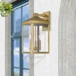 Nyack 3-Light Antique Brass Hardwired Outdoor Wall Lantern Sconce by Livex Lighting