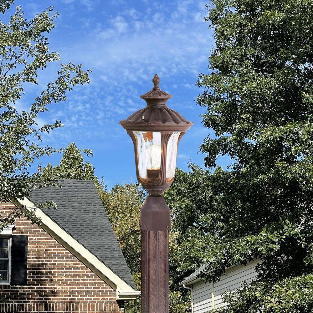Livex Lighting is well known for quality, style and value. From the Oxford outdoor lantern collection, this traditional design will add curb appeal to any home. It features a handsome, antique-style post plate and decorative arm. Light amber water glass cast an appealing light and lends to its vintage charm. Wall plate, arm and other details are all in a imperial bronze finish. This well-rounded fixture is sure to satisfy your lighting needs.