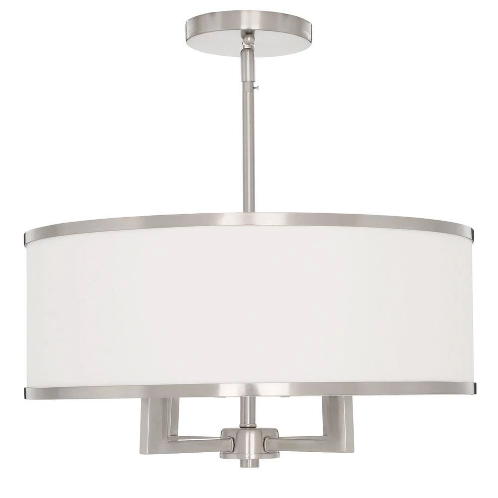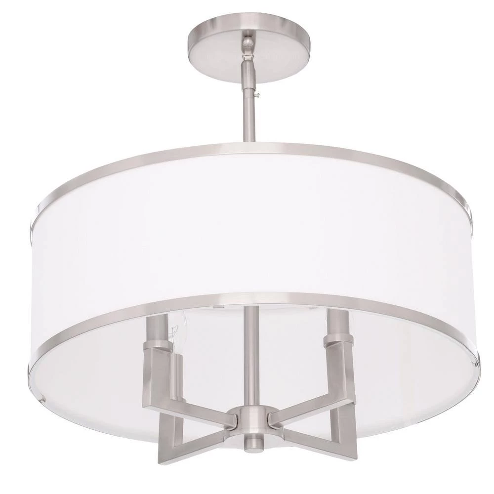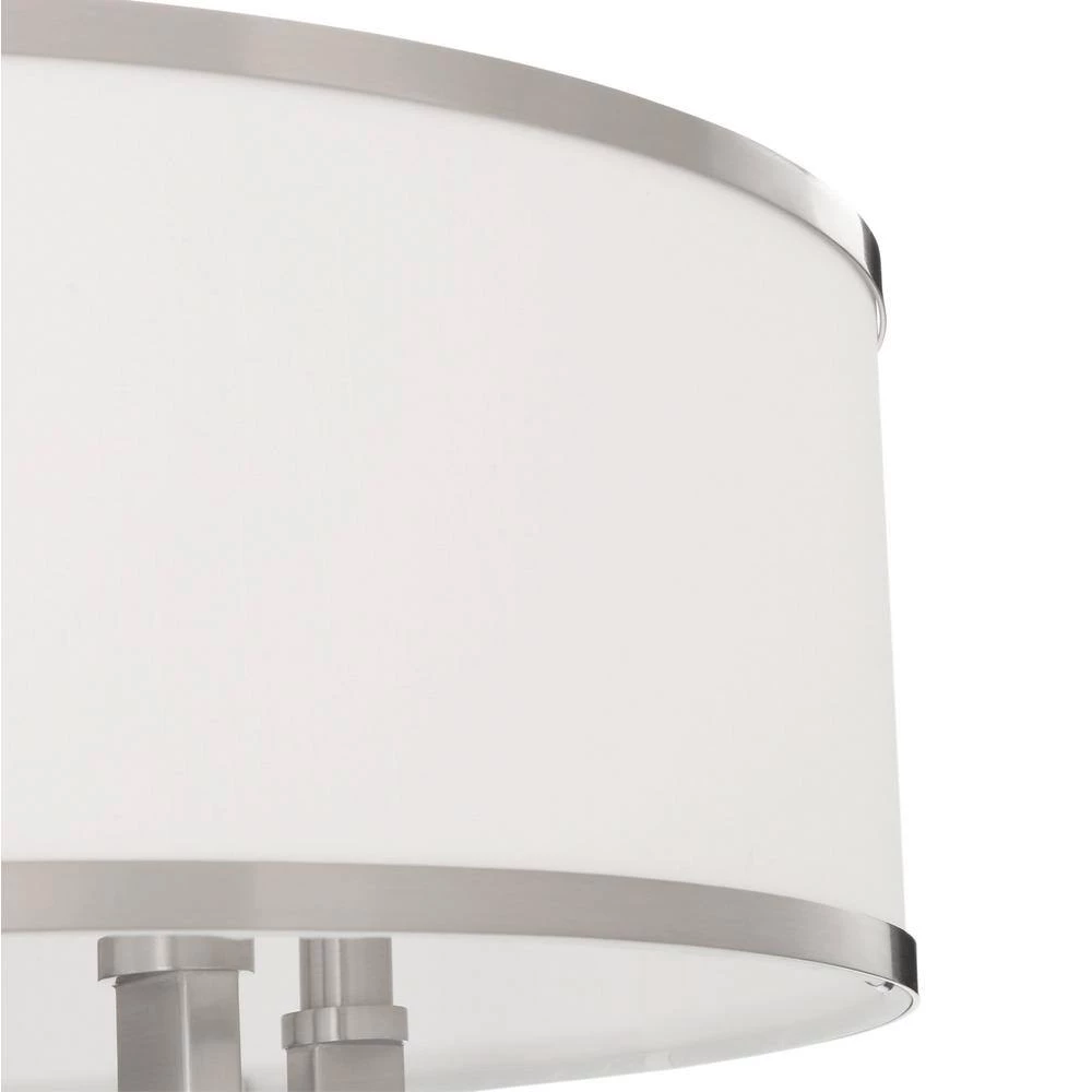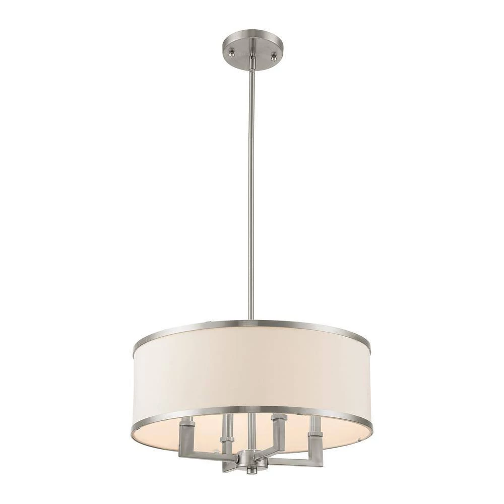 Add transitional illumination to your space with this 4-light chandelier from the Park collection. The hand-crafted, off-white fabric hardback shade and brushed nickel finish make it perfect for modern and classic interiors. Eye-catching and stylish, this fixture adds visual interest to a dining room, foyer or living room. It uses four E12 candelabra base, 60-W bulbs (sold separately) and includes all the hardware for an easy installation.