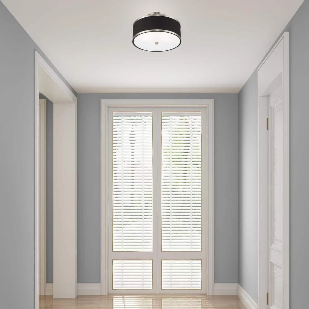 Livex Lighting is well known for quality, style and value. Update your decor with this sleek semi flush mount design. The shaded frame comes in a bushed nickel finish which nicely complements the hand crafted black fabric hardback shade. This well-rounded fixture is sure to satisfy your lighting needs.