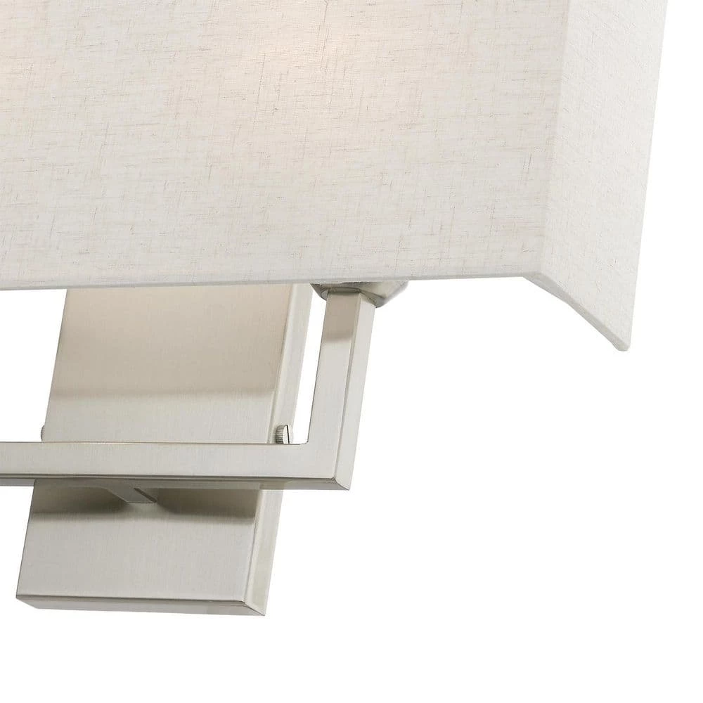 Livex Lighting is well known for quality, style and value. The contemporary design of the Pierson wall sconce is as beautiful as it is simple. An open rectangle, brushed nickel finish frame is paired with a light and airy horizontal rectangle oatmeal fabric hardback shade.