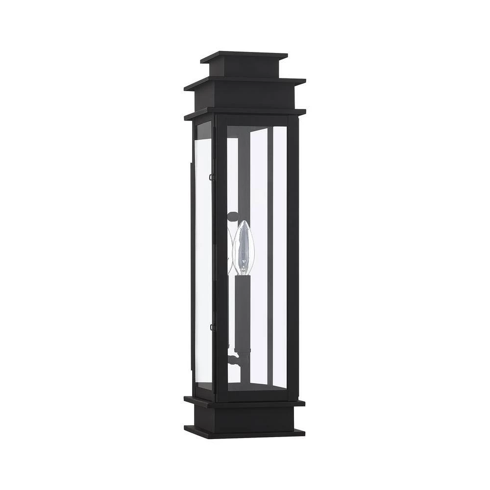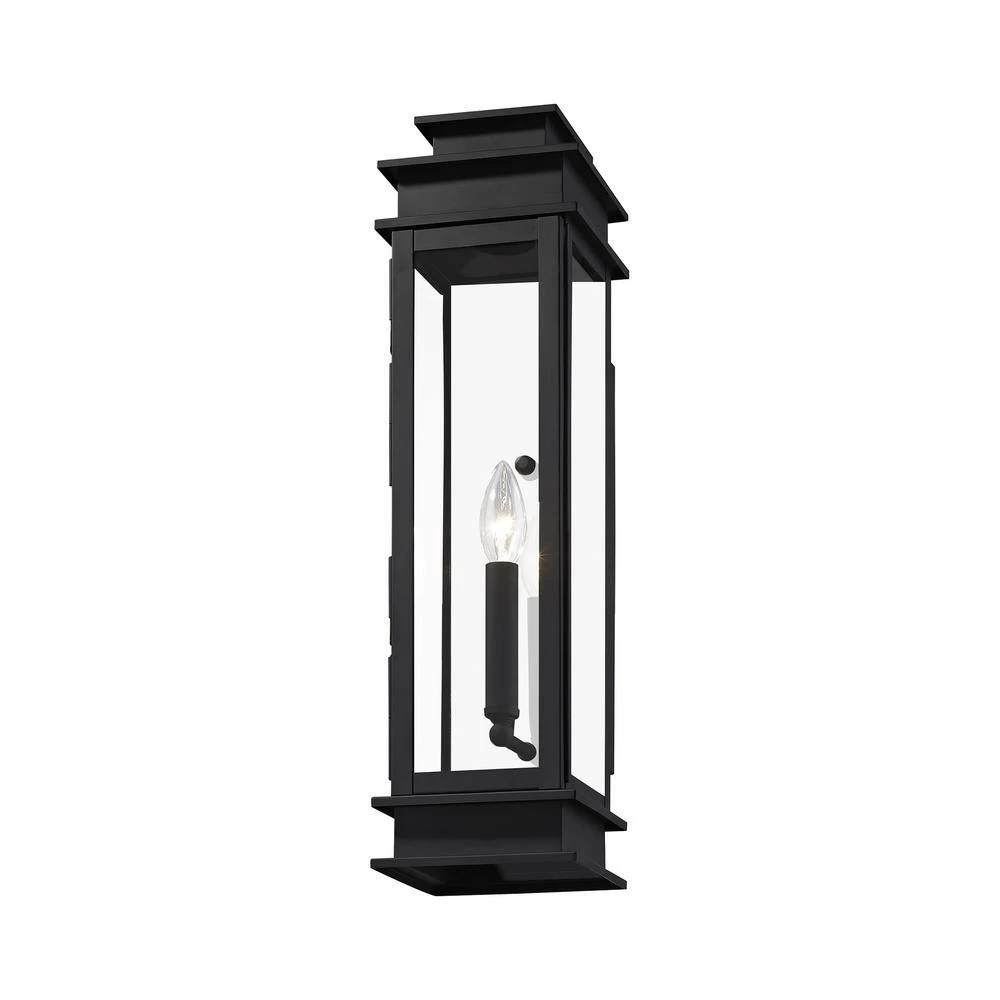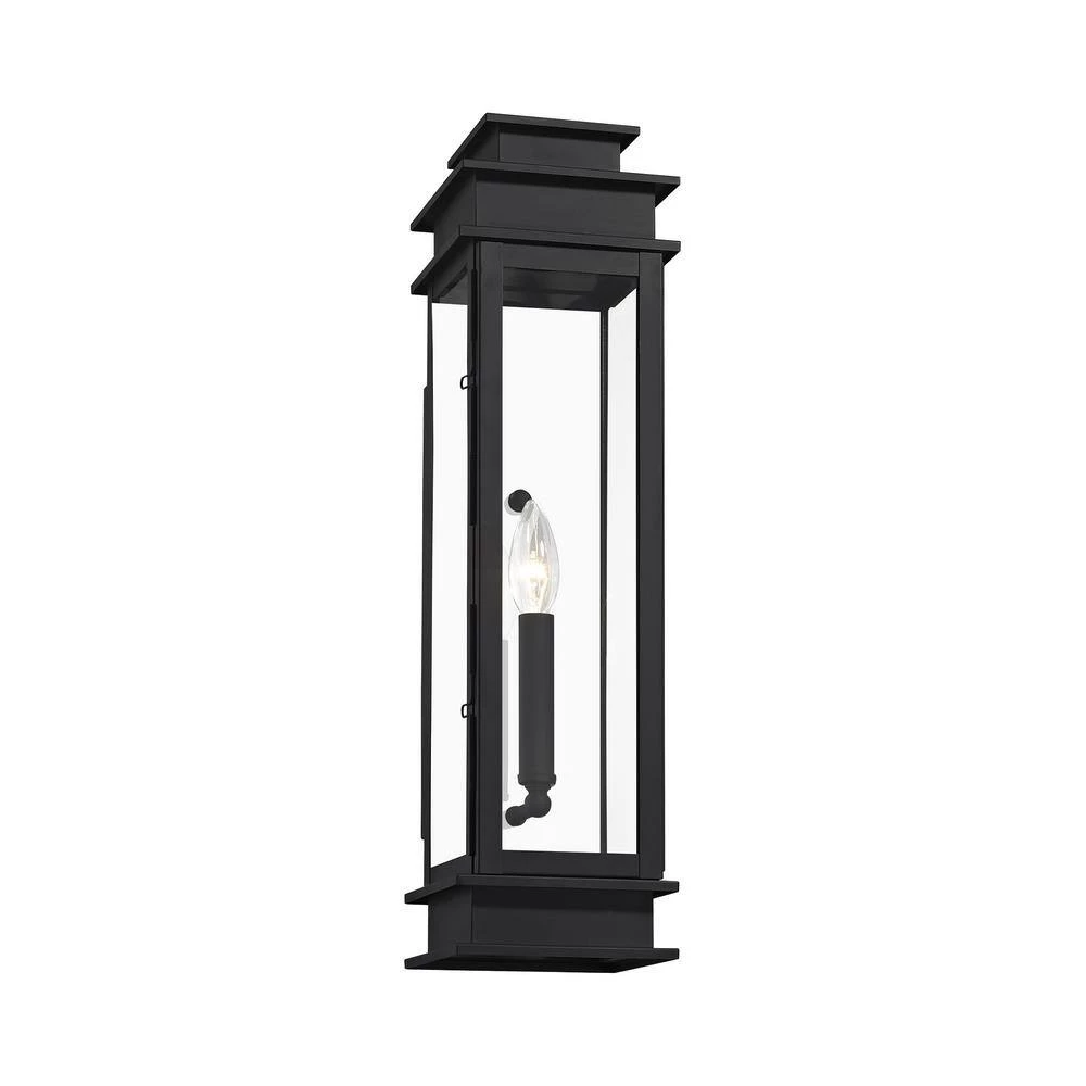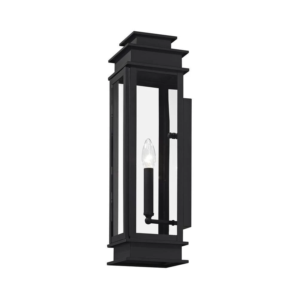 Livex Lighting is well known for quality, style and value. The Princeton collection is a fresh interpretation on the classic English pocket lantern. Hand crafted solid brass, our Princeton fixtures are built for lasting beauty. This outdoor wall light features a black finish and clear glass. This old world charm is built to last. This well-rounded fixture is sure to satisfy your lighting needs.