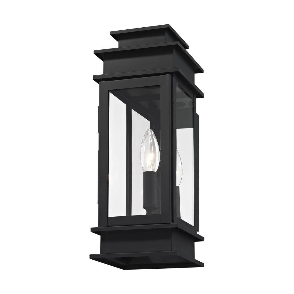 Livex Lighting is well known for quality, style and value. The Princeton collection is a fresh interpretation on the classic English pocket lantern. Hand crafted solid brass, our Princeton fixtures are built for lasting beauty. This outdoor wall light features a black finish and clear glass. This old world charm is built to last. This well-rounded fixture is sure to satisfy your lighting needs.