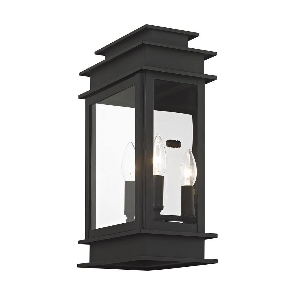 The Princeton collection is a fresh interpretation on the classic English pocket lantern. Hand crafted solid brass, our Princeton fixtures are built for lasting beauty. This outdoor wall light features a black finish and clear glass. This old world charm is built to last.