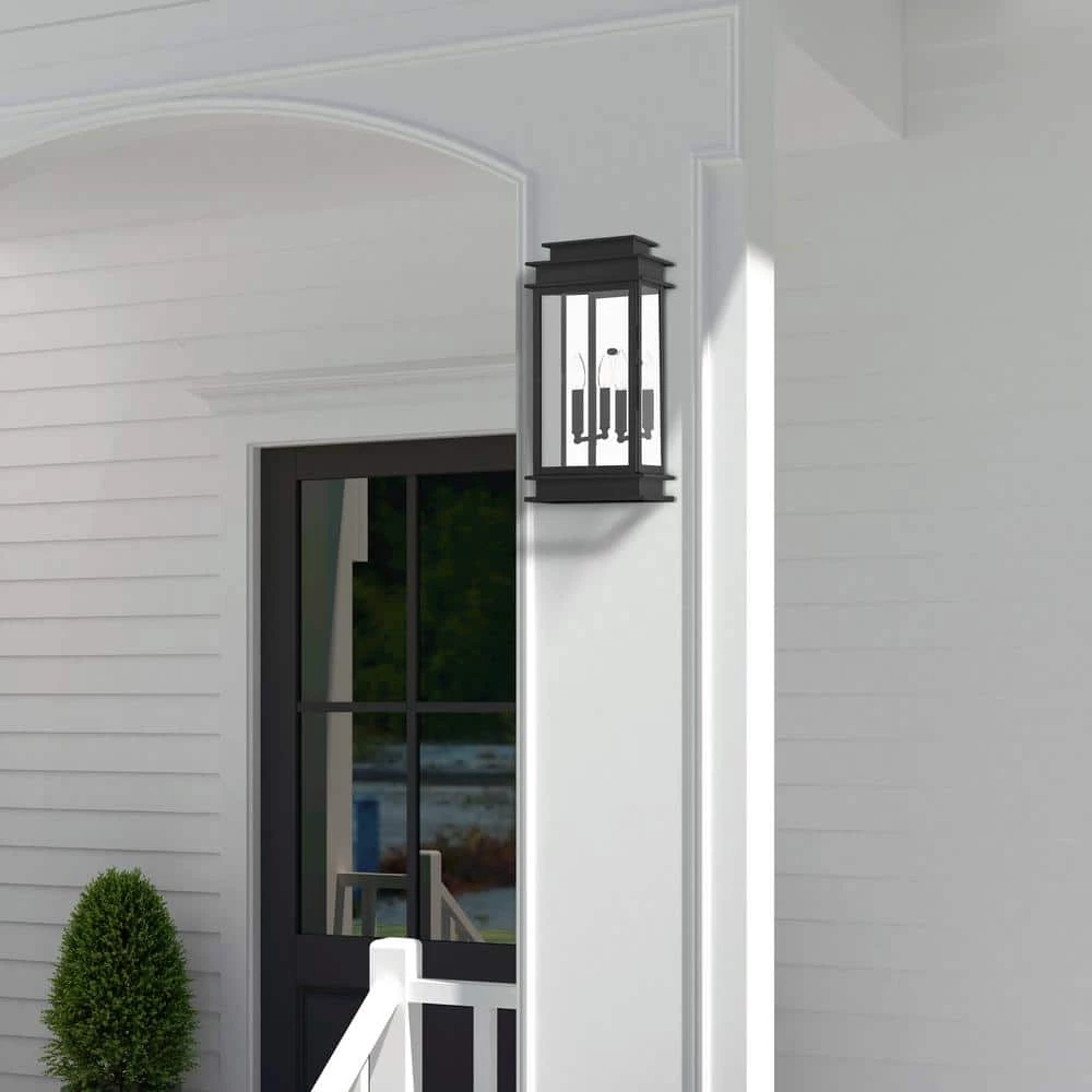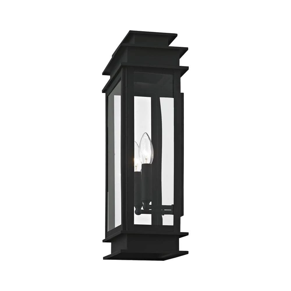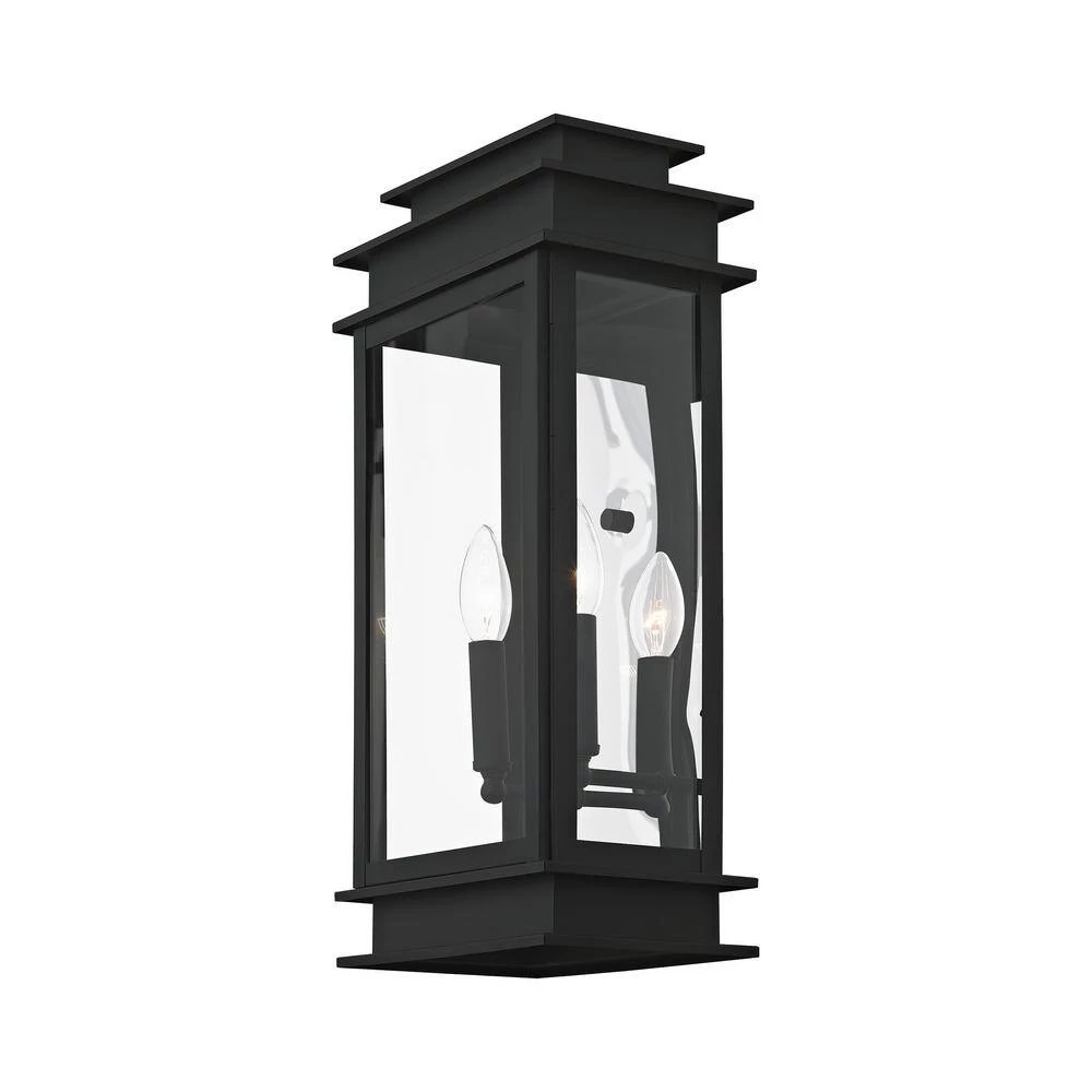 Livex Lighting is well known for quality, style and value. The Princeton collection is a fresh interpretation on the classic English pocket lantern. Hand crafted solid brass, our Princeton fixtures are built for lasting beauty. This outdoor wall light features a black finish and clear glass. This old world charm is built to last. This well-rounded fixture is sure to satisfy your lighting needs.