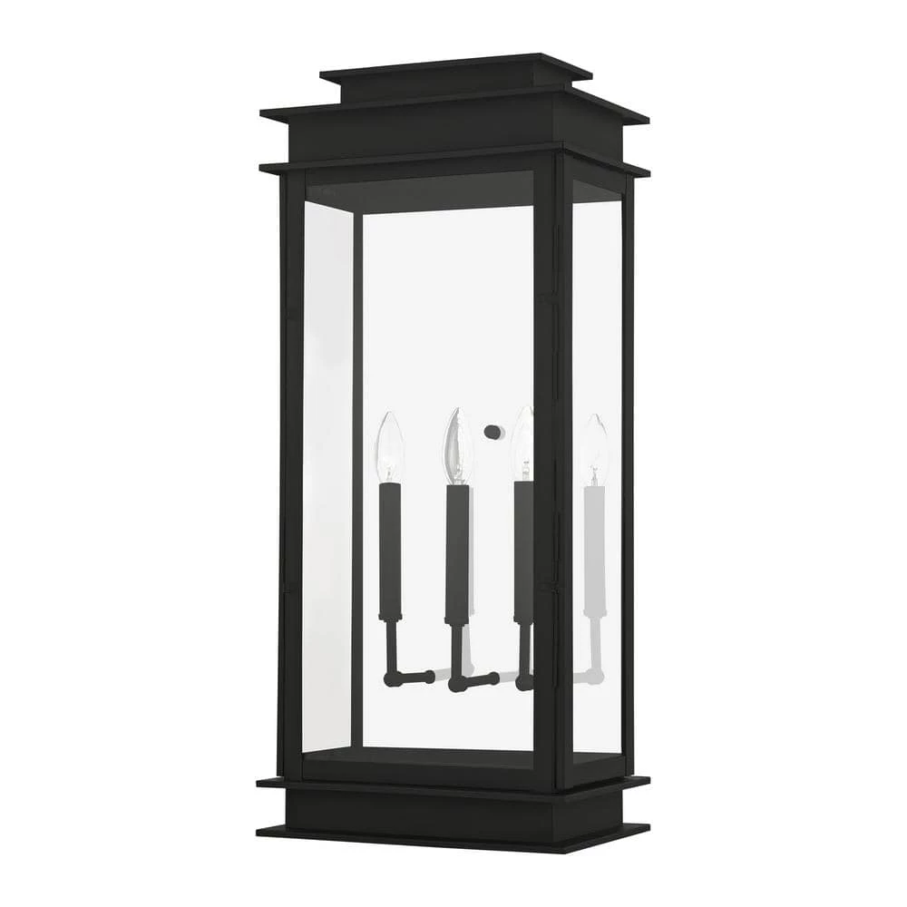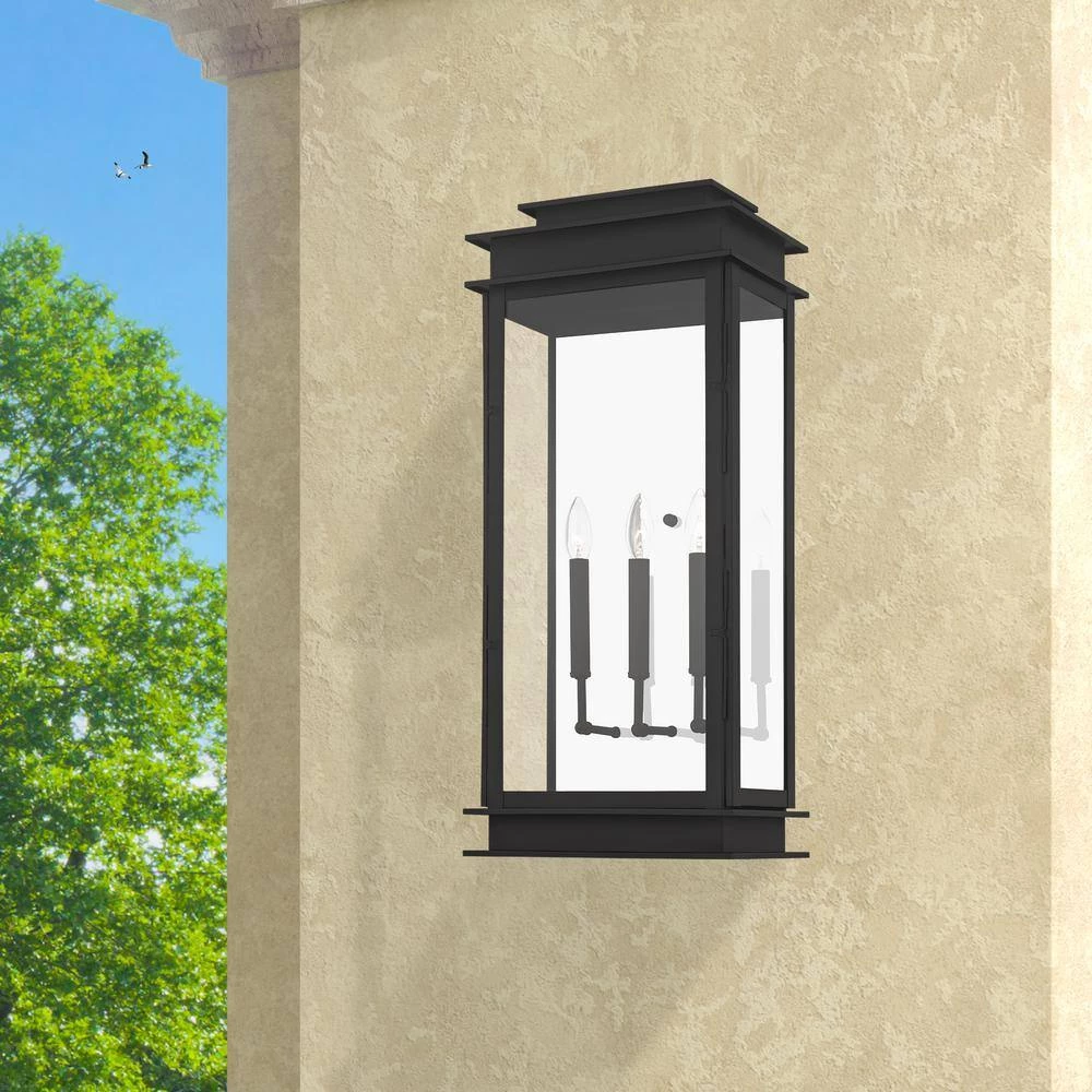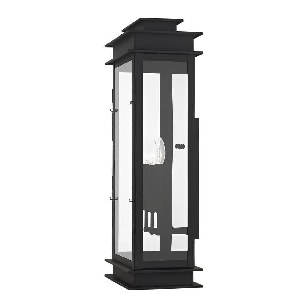 Livex Lighting is well known for quality, style and value. The Princeton collection is a fresh interpretation on the classic English pocket lantern. Hand crafted solid brass, our Princeton fixtures are built for lasting beauty. This outdoor wall light features a black finish and clear glass. This old world charm is built to last. This well-rounded fixture is sure to satisfy your lighting needs.