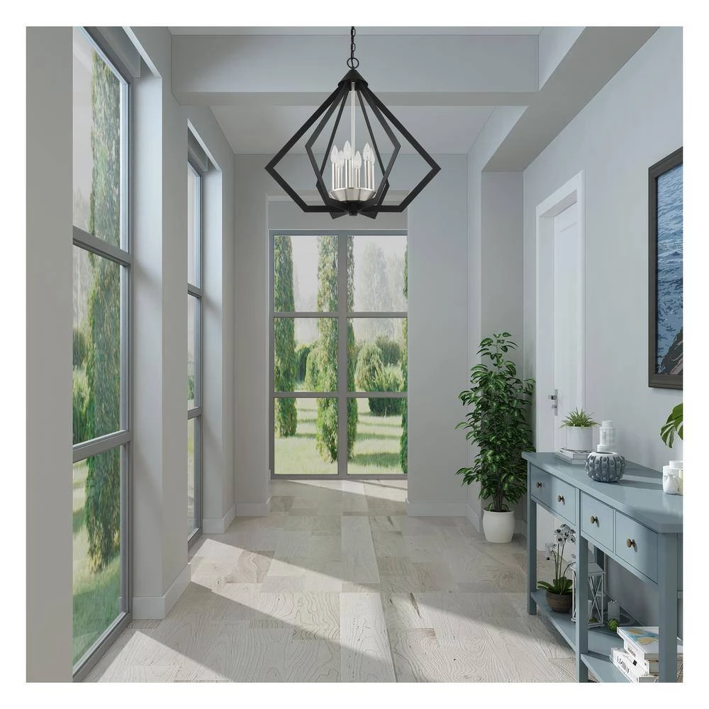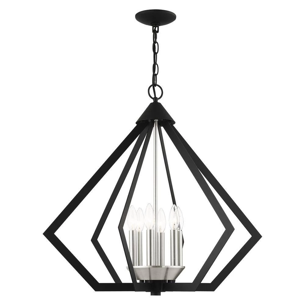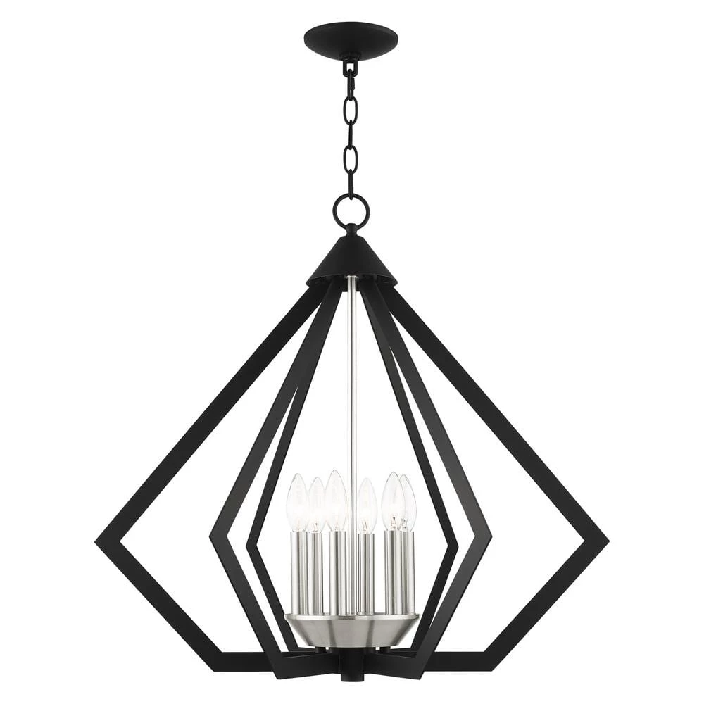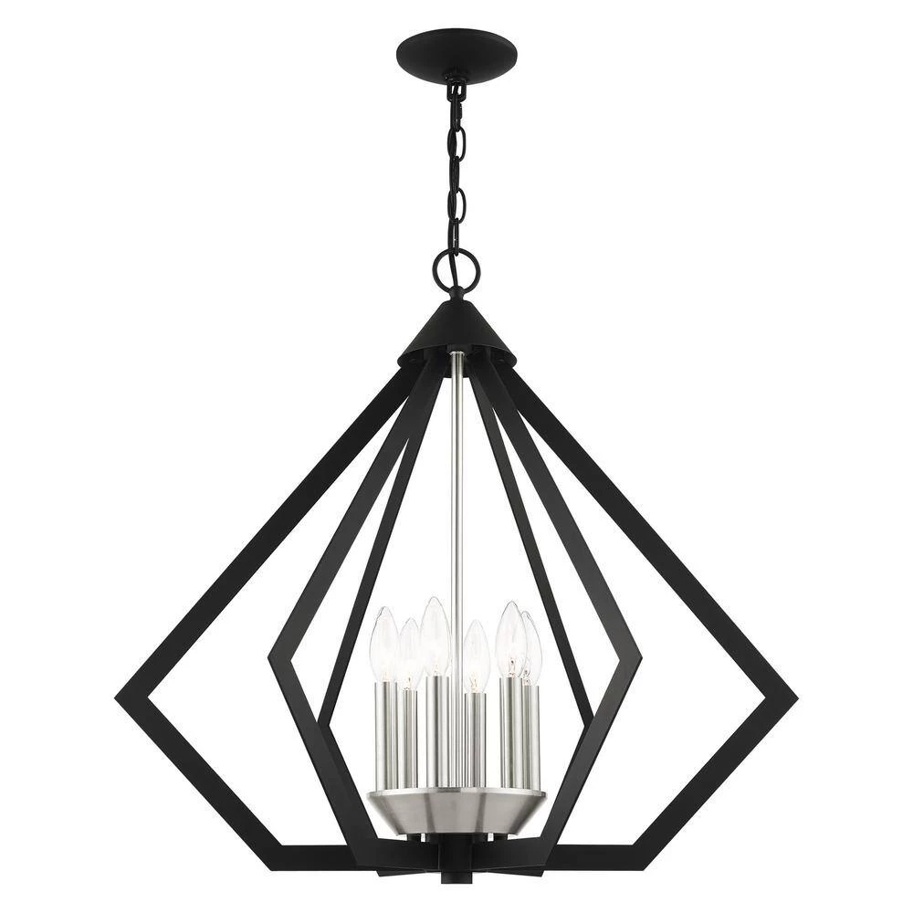 Livex Lighting is well known for quality, style and value. Influenced by modern industrial style, our Prism black finish six-light diamond chandelier with brushed nickel finish accents has a striking triangular shape. Sleek and contemporary, it’s ideal for modern, contemporary or industrial style interiors. This well-rounded fixture is sure to satisfy your lighting needs.