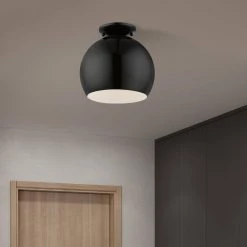 Piedmont 10 in. 1-Light Shiny Black Semi-Flush Mount by Livex Lighting