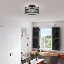 Industro 3 Light Black with Brushed Nickel Accents Semi Flush Mount by Livex Lighting