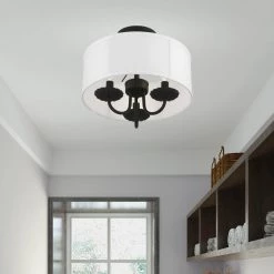 Brookdale 13 in. 3-Light Black Semi-Flush Mount by Livex Lighting